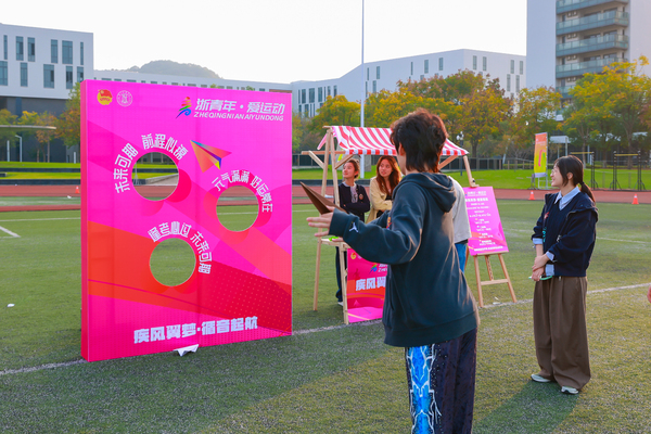 期间还举行了一场嘉年华比赛,其中包括投飞镖、踢毽子、投壶、跳长绳、竞速毛毛虫等多个趣味性活动。大家在这里释放活力,收获友谊,现场洋溢着青春快乐的气息。