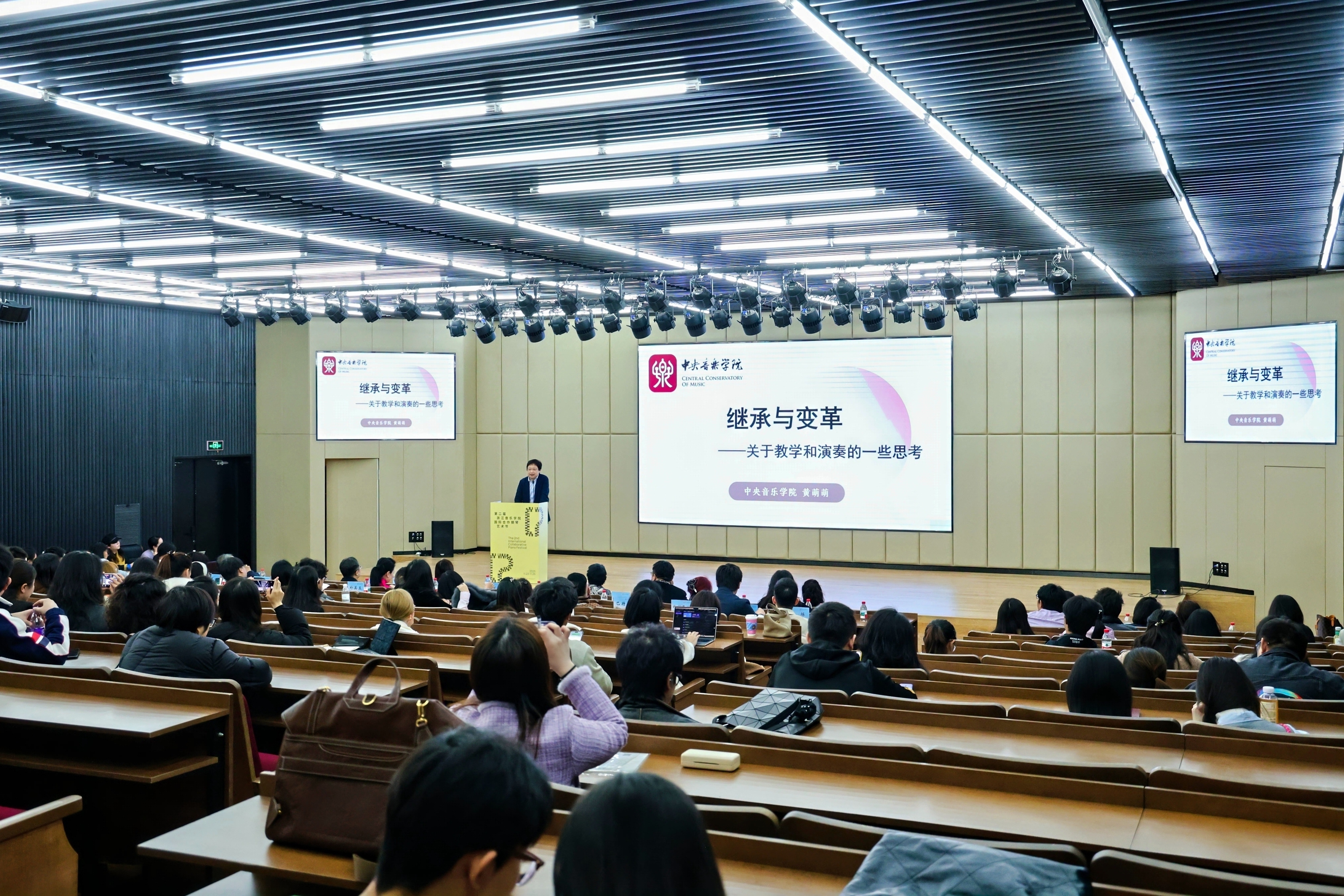 中央音乐学院黄萌萌教授作题为《继承与变革——关于教学和演奏的一些思考》的主旨发言,系统阐述了合作钢琴领域的艺术传承与创新发展,强调合作钢琴家的角色定位亟需从“职业伴奏者”转变为能与独奏家平等对话、具备独立音乐表达能力并能相互启发的“室内乐演奏家”。为实现这一“转型”,他提出应深度研读总谱,勇于挖掘音乐中的戏剧性与内在性格,并在教学中着力培养学生的全局视野、批判性思维与综合艺术素养。