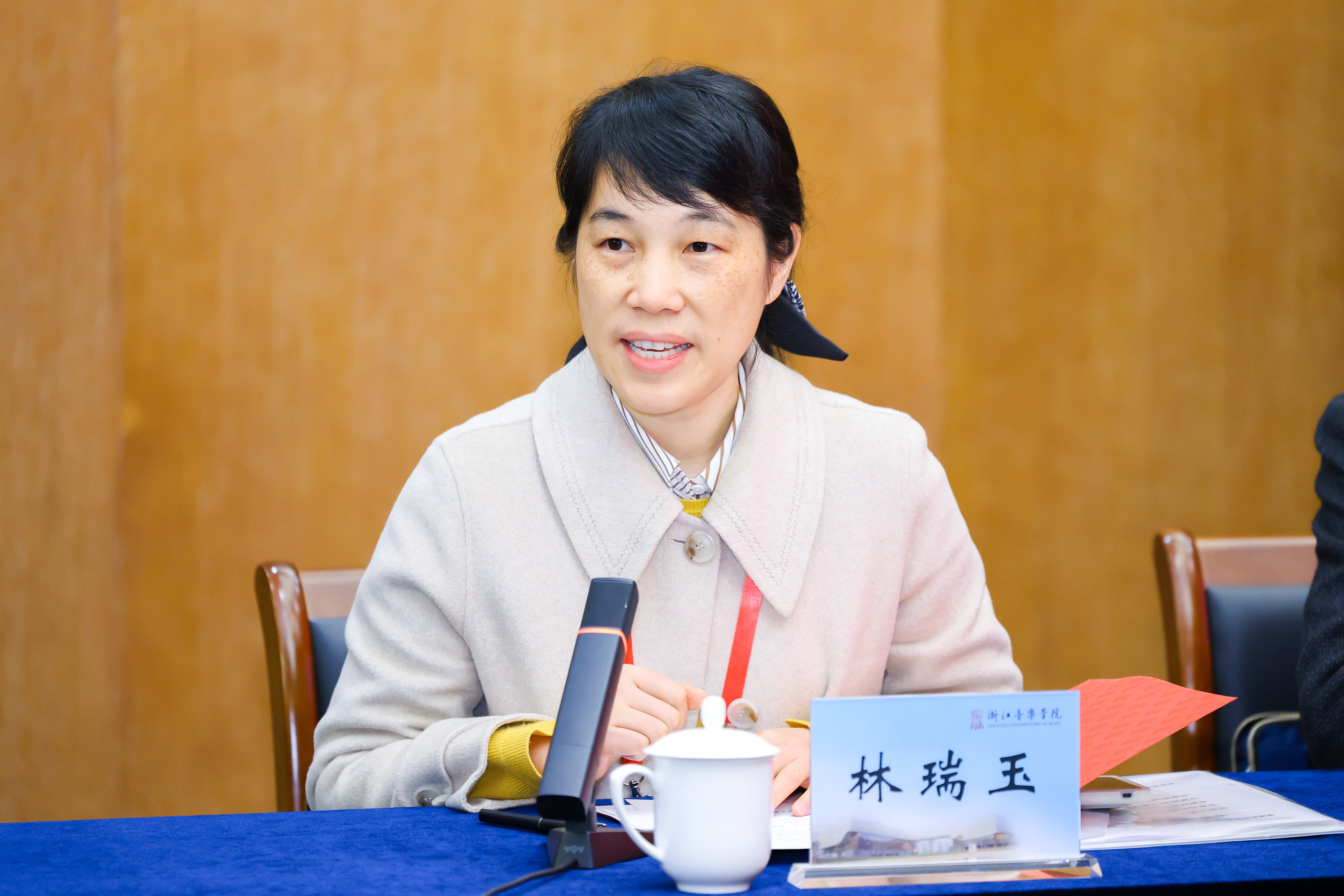 在听取反馈意见后,院长王瑞作表态发言,他对专家组富有建设性、切中要害的反馈表示衷心感谢和高度认同,认为此次认证是对浙音舞蹈学师范专业建设的一次系统“把脉会诊”,更是推动学校内涵发展的重要契机。他深刻指出,作为一所正处于快速发展阶段的新建院校,浙音仍处于“爬坡过坎”的创业期,在人才培养规范性、现代大学制度建设等方面仍需持续发力。他完全认同专家组所指出的问题,并强调舞蹈学师范与表演专业应实现学科资源的交叉融合与协同支撑。面向未来,学院将以此次认证为契机,系统推进三方面整改工作:一是深入学习研究、全面吸纳专家组意见,并将其辐射至相关艺术专业建设之中;二是系统梳理并完善舞蹈学师范专业人才培养方案,建立健全质量监控与保障机制;三是全面准确理解国家政策导向,加强校级层面的系统规划与顶层设计。王瑞表示,学院将以更高的站位、更实的举措落实整改任务,持续提升办学质量,力争在后续评估中展现新成效、新面貌。