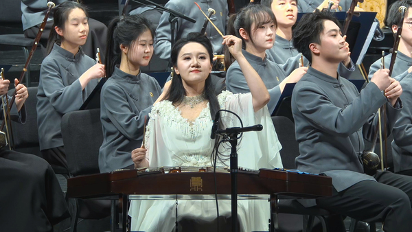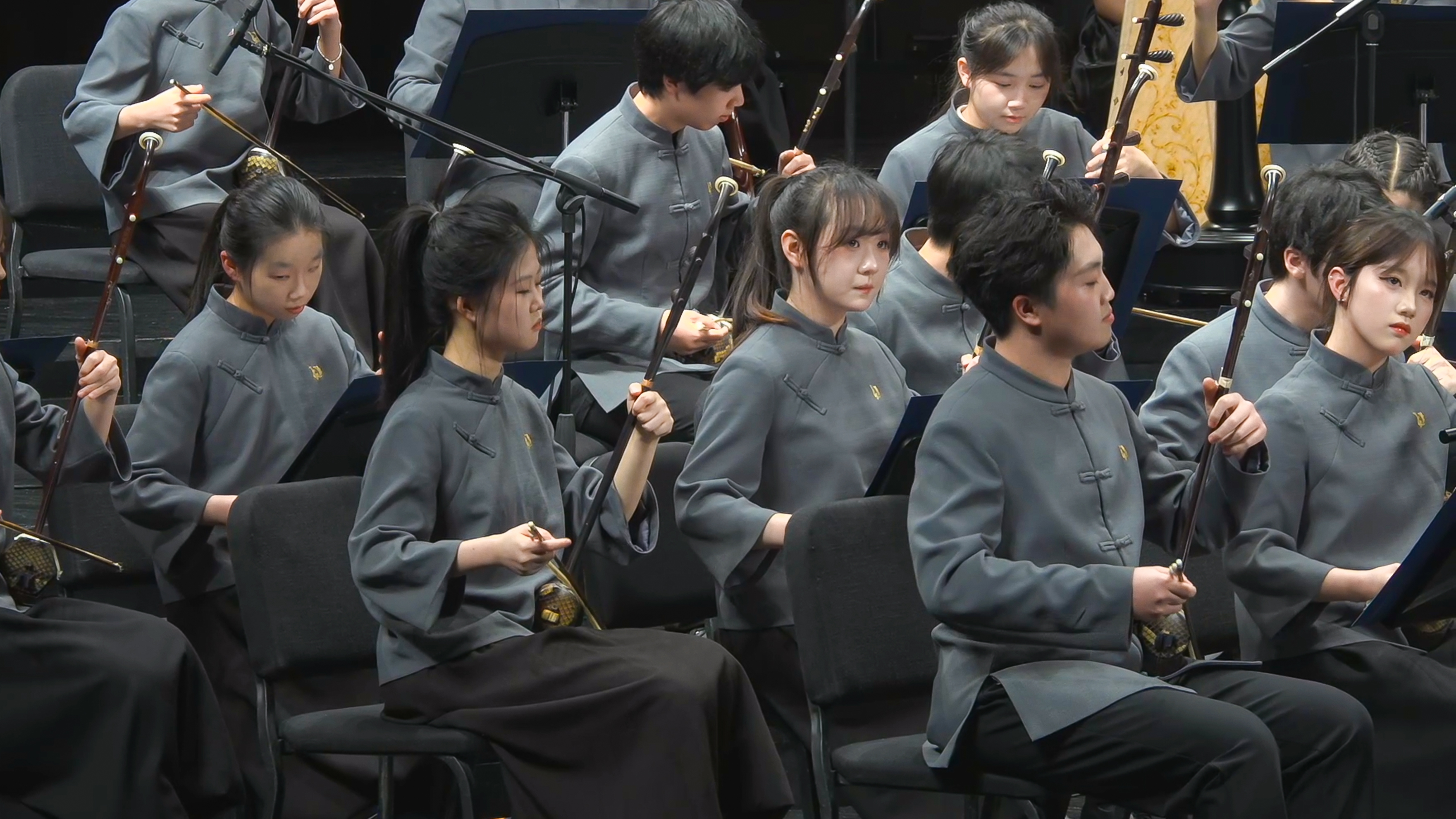 青年作曲家臧婷的民族管弦乐《春之舞》在指挥张正宸的引领下,仿佛春风拂过,让整个乐队的音符都“舞动”了起来,拉开了民乐篇章的序幕。竹笛与扬琴铺陈出明亮春意,弦乐声部的力度层层递进,精准托举起作品中“奋斗与希望”的主题。年轻乐手以自然的朝气,让这幅春耕图景显得生机盎然。