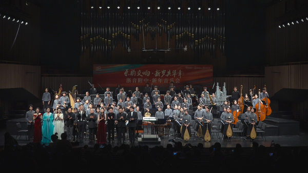 12月28日晚,浙江音乐学院附属音乐学校“乐韵交响,新年共华章”新年音乐会在浙音音乐厅启幕。本次演出由浙江音乐学院附属音乐学校与浙音乐典文化联合主办,汇聚了140名师生参与演出。值得一提的是,浙江音乐学院附属音乐学校交响乐团和国乐团首次同台亮相,这两支乐团均为省内编制最完整、专业水准最高的青少年乐团。演出中,西方交响乐与中国民族管弦乐交相辉映,经典作品与当代原创作品同台演绎,充分展现了附中师生的艺术风采与专业水准。
