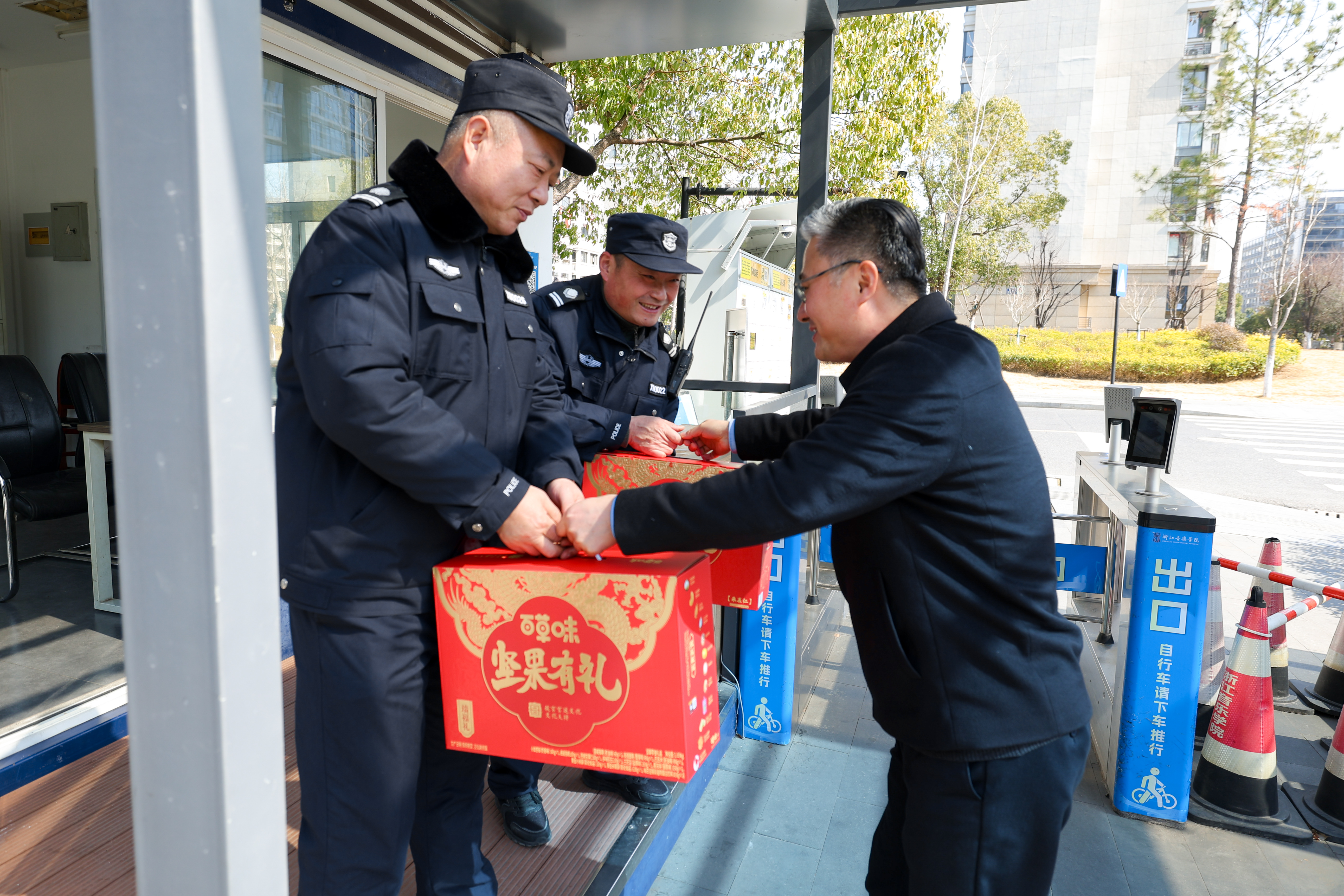 新春将至,岁寒意暖。2月9日上午,学校领导开展2026年"寒假送温暖"慰问活动,向寒假期间坚守在工作岗位上的一线员工致以诚挚问候和新春祝福。党委书记薛亮,党委副书记、统战部部长、工会主席蔡亦军,副院长、党委委员奚丽萍,党委委员、宣传部部长、教师工作部部长施莹参加慰问。