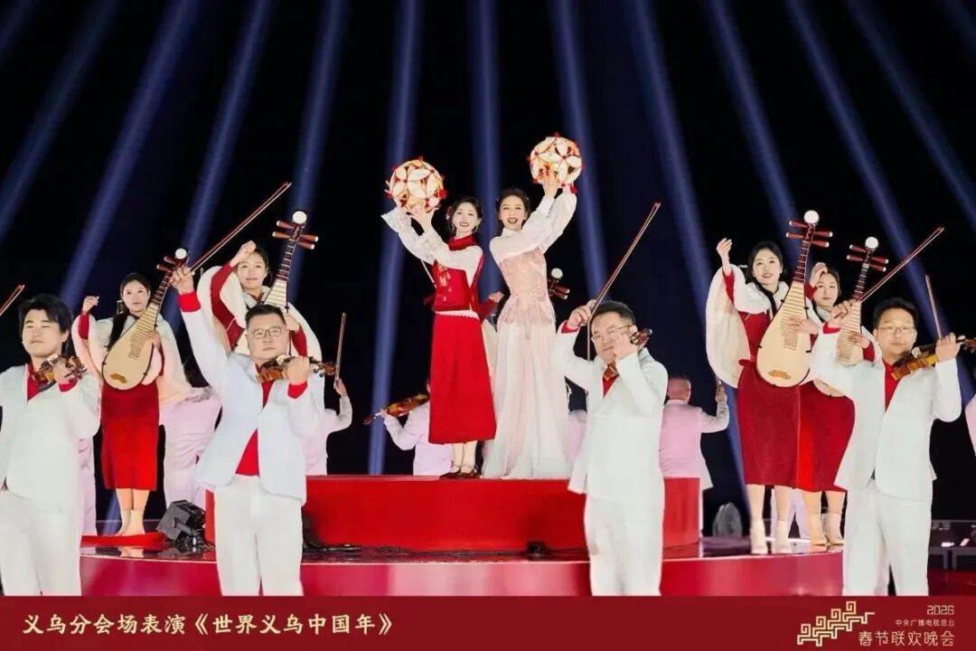 这是浙音师生连续5年登上央视总台春晚。今年,他们以156人之空前规模,在北京主会场与义乌分会场联袂亮相,在国家级宏阔舞台讲述中国故事、传递江南气韵,为全球华人送上新春祝福。