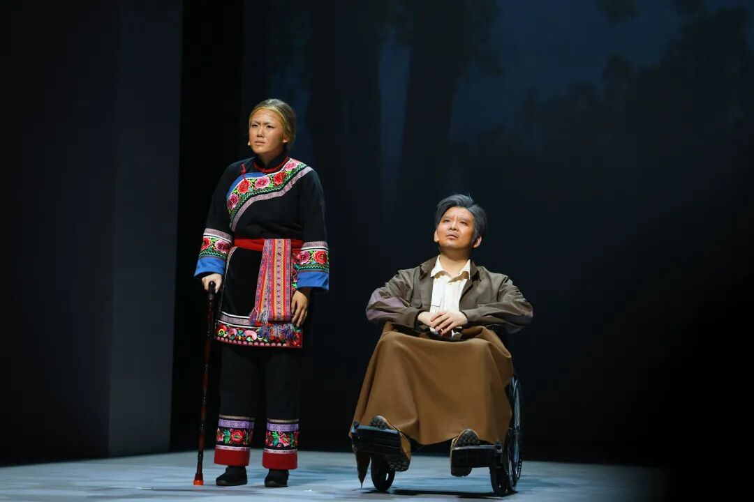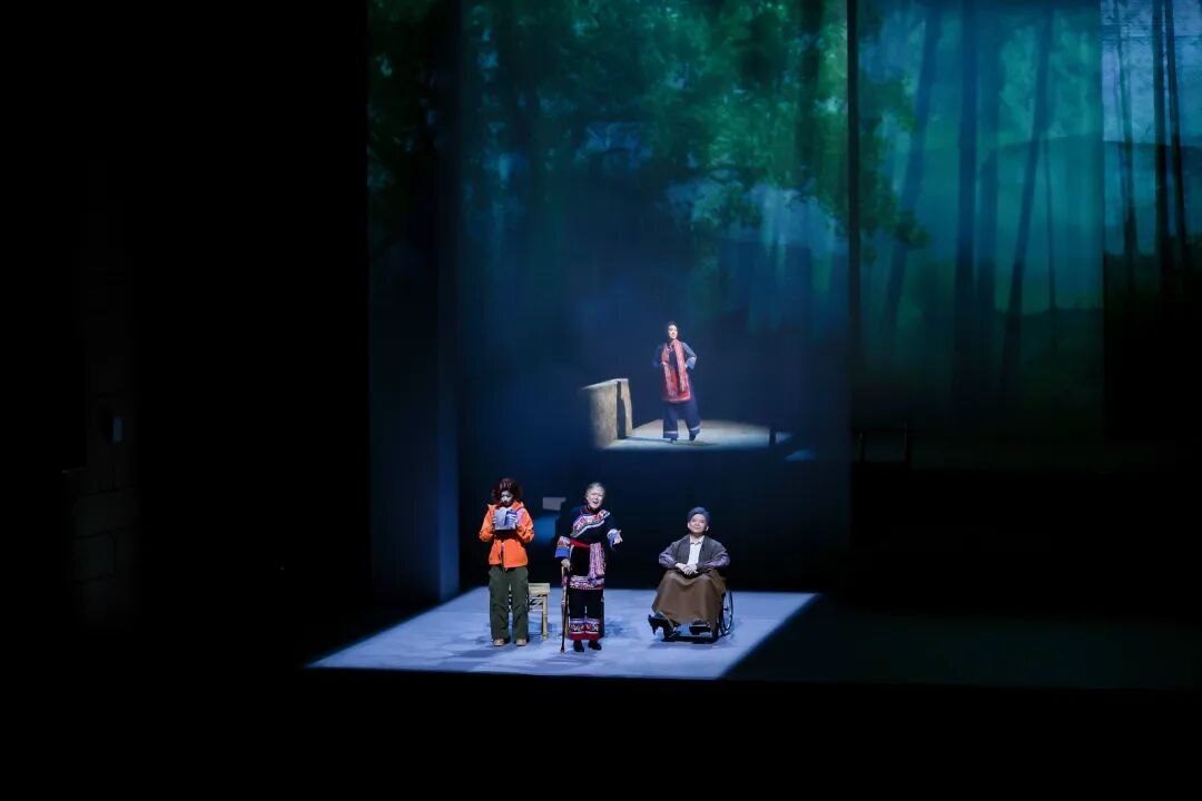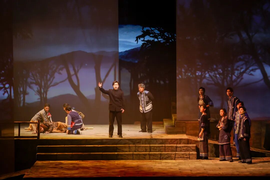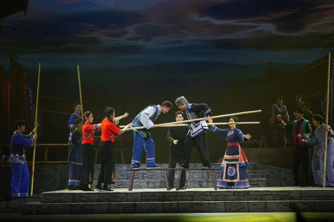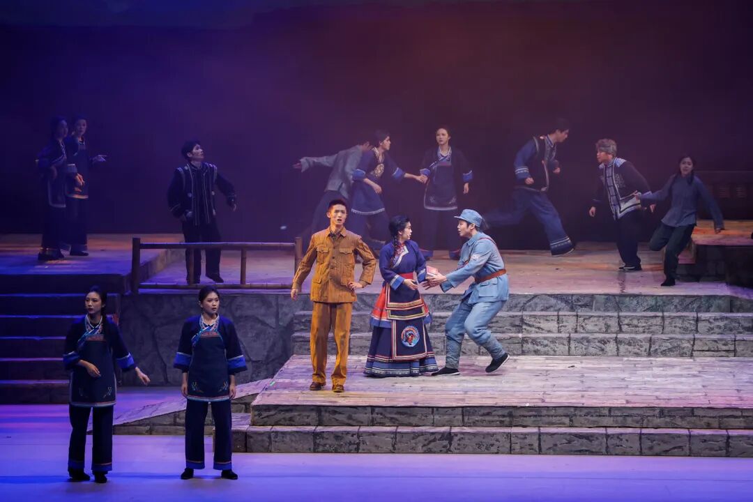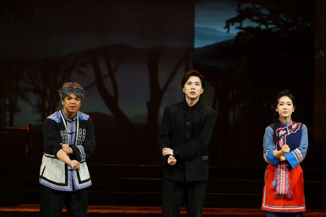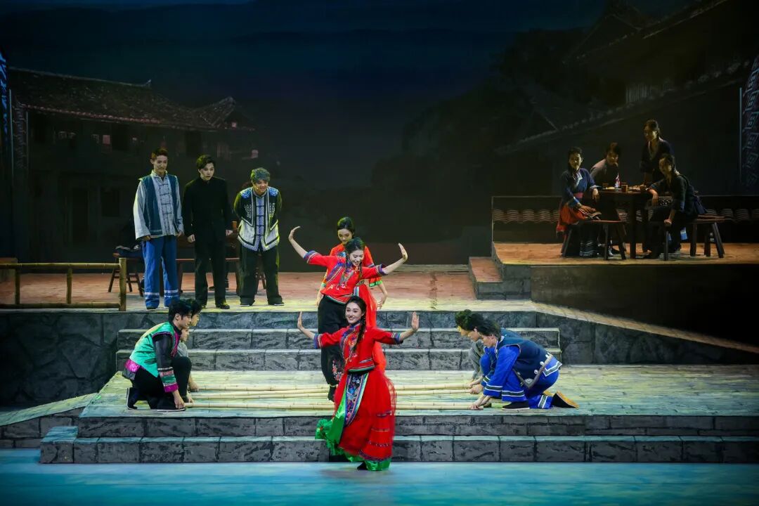 在艺术呈现上,作品巧妙运用1944年与2025年双时空交织的叙事结构,将畲族文化传统、抗战历史记忆、英士大学办学史与浙南山乡独特风貌融入叙事。值得一提的是,作品深度融合畲族文化元素。剧中蓝翠翠的唱腔保留了畲族山歌特有的颤音节奏,村民的集体舞蹈严格复刻了畲族“踏步摆腰”的传统动作,舞台上的每个画面都在诉说着浓浓的民族风情。