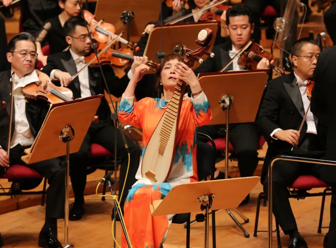 除《第二琵琶协奏曲》外,本乐季中,吴蛮还演出了美国作曲家卢·哈里森的《琵琶和弦乐队协奏曲》(作品专辑荣获格莱美最佳协奏曲独奏家提名奖),以及由首位斩获普利策音乐奖的华人女性杜韵创作、中国首演的琵琶协奏曲《听书》(一部从福建南音汲取灵感的现代之作)——这三首曲子均为吴蛮量身定做,并分别由余隆、景焕、乔纳森·诺特三位指挥家执棒献演,为现场观众带来传统民族音乐与交响乐的深度对话。正如吴蛮所说:“这三首作品,代表着以赵季平为代表的德高望重的老一辈作曲家、以卢·哈里森为代表的西方作曲家,和以杜韵为代表的“80后”作曲家对琵琶这种民族音乐的理解,展现了跨文化视野下艺术创作的无限可能,也让来自全球的艺术家和观众参与感受中国文化的博大精深。”