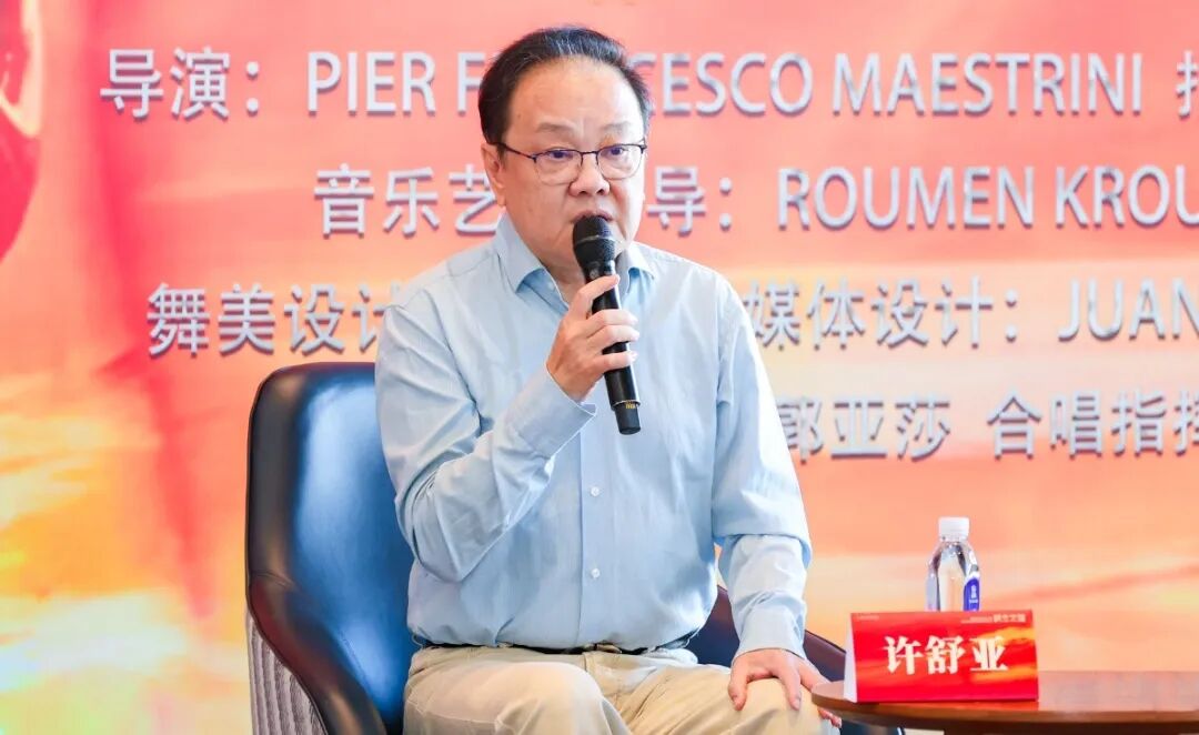 制作人、院长王瑞介绍了本剧的创作背景与艺术愿景,他表示,大型原创歌剧《战士之路》以纪念中国人民抗日战争暨世界反法西斯战争胜利80周年为契机进行创作,用艺术这一无国界的语言,讲述了中美军民并肩抗战的感人历史。这部作品汇聚了来自中国、意大利、瑞士、西班牙、巴西的国际顶尖团队,旨在打造一部兼具中国文化、民族精神与世界语境的艺术精品,使其不仅在国内引发共鸣,更在海外舞台传递中国故事、促进文明互鉴,充分彰显中国为世界反法西斯战争作出的巨大贡献。王瑞强调,这部作品不仅是对历史的深情回望,更是对先烈崇高精神的致敬,希望这部作品成为一座连接历史与现实、传递友谊与希望的桥梁,将那段跨越国界的生死情谊和国际主义精神,那份勇气、正义和守望相助传承下去。