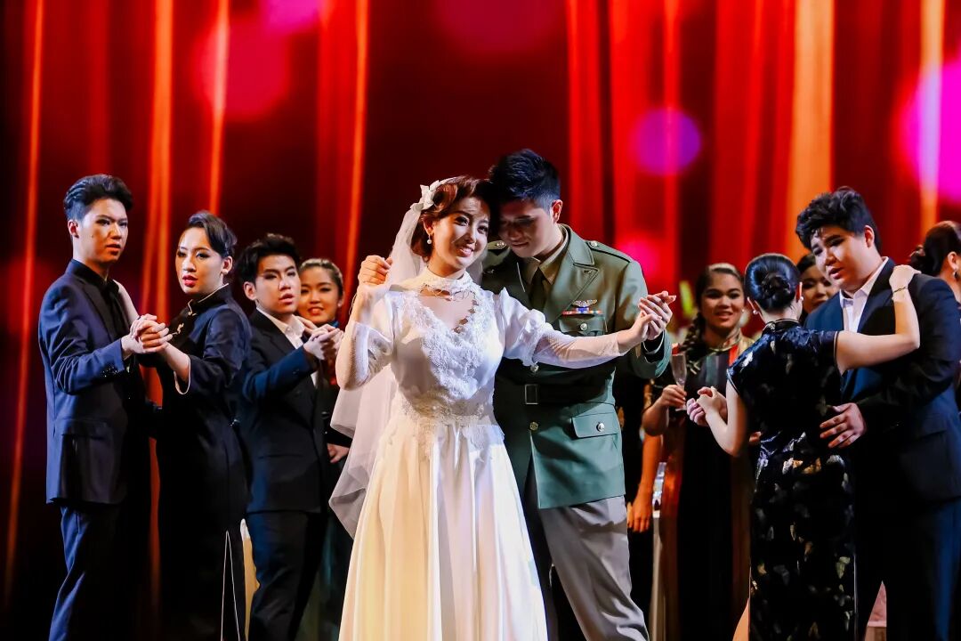 陈香梅的塑造则展现了战火中女性的坚韧与成长,她柔和的女性魅力为歌剧的阳刚之气增添了别样色彩。饰演者由声乐歌剧系教师方香蕾与歌剧学院的两名学员金凡雅、多莉雅共同完成。方香蕾关注人物情绪的内在逻辑和真实本质:“通过深入内心,理清内在逻辑,再用内心激发声音和身体的外在表达。”金凡雅则在排练演出中不断深入角色内心,细化表演的每一个动作。刚上本科二年级的多莉雅则更注重寻找她与陈香梅的共通之处,“陈香梅成为记者时,跟我一样也是20岁。”这是她出演的第一部歌剧,在老师们“手把手”的教导下迅速成长。“老师们的表演直击内心,让我真切体会到歌剧演员的魅力,也对歌剧表演有了全新的理解。”