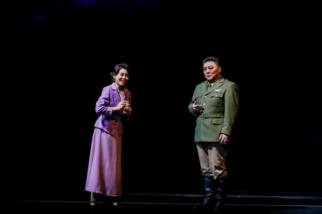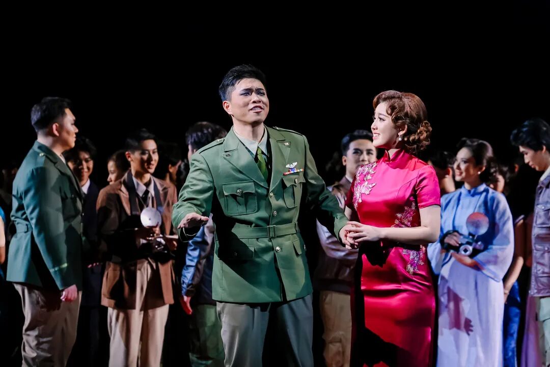 该剧对历史人物进行了深入肌理的刻画。饰演陈纳德的男高音歌唱家韩蓬,为角色倾注了大量心血。“我深知这不仅仅是在扮演一位历史英雄,更是在诠释一段跨越国界的勇气、责任与人性纠葛的史诗。”他通过大量阅读史料、观摩影像,观察其走路的姿态、说话的神情、微笑的样子,甚至“眼神中那种混合着坚毅、疲惫与执着的独特气质”,力图还原一个“有决心、有焦虑、有柔情、有反思”的复杂个体。“陈纳德是一个在极端环境下,被责任、勇气和巨大牺牲所塑造的、充满悲剧色彩的英雄。因此在我看来,表演不在于唱出多么震撼的高音,而在于是否让观众相信,舞台上的我就是那个在历史的十字路口,背负着沉重使命,却依然选择为信念而飞的‘飞虎将军’。”