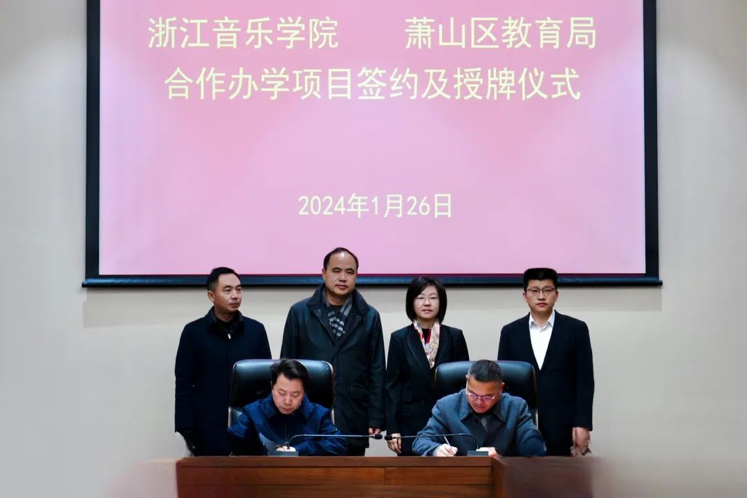 为全面贯彻落实习近平文化思想和习近平总书记考察浙江重要讲话精神,加快推进高水平音乐学院建设,加强高质量艺术教育供给,助力共同富裕示范区和文化高地建设,加快推动浙江音乐学院附属音乐学校(即浙音附中)“1+X”集团化办学进程,近日,学院与萧山区教育局举行合作办学项目签约。学院党委副书记王均寅,萧山区副区长杨新程,萧山区教育局党委书记、局长章建平,学院社会合作中心(校友办)、附属音乐学校以及萧山区政府、区教育局、萧山五中等单位负责人参加仪式。