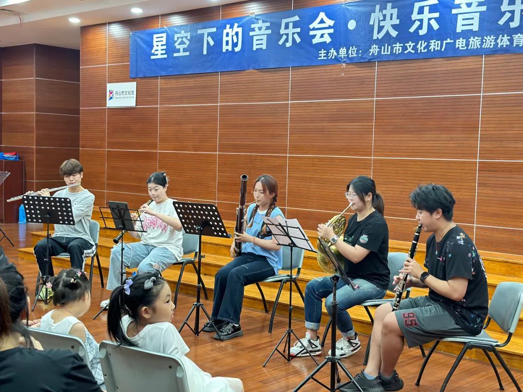 7月14日晚,“快乐音乐教室”实践团在舟山夜市开展“文艺赋美”——星空下的音乐会。