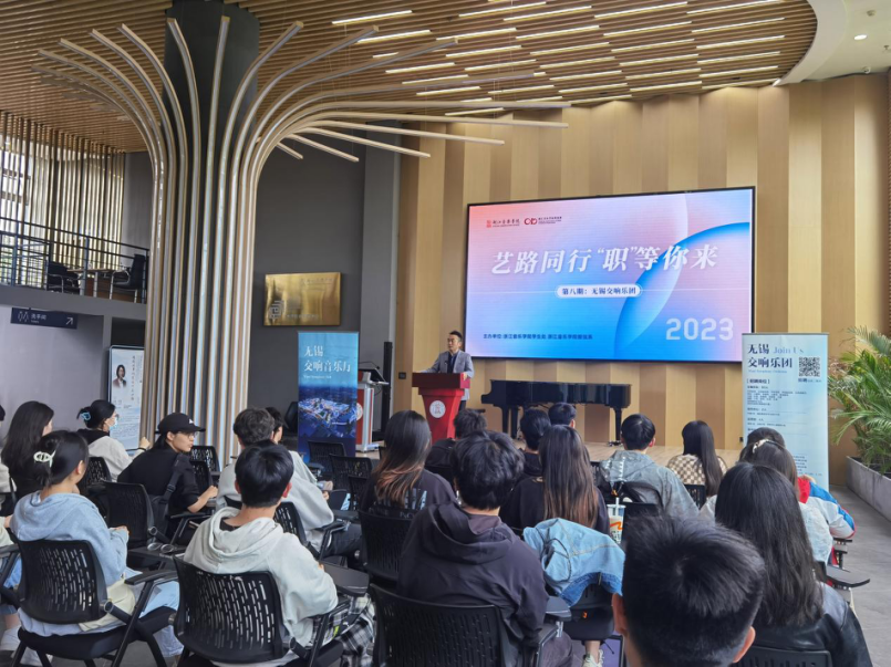艺路同行,“职”等你来——“访企拓岗”促就业,“艺”往“职”前见实效 “无锡人文资源丰富,名胜古迹众多,有着风光绮丽的太湖山水和底蕴深厚的人文历史,可以说是一座历史文化名城。”在管弦系专场招聘宣讲会现场,无锡交响乐团常务副团长尹锋滔滔不绝地介绍着这座充满幸福感的城市。 5月12日,“艺路同行,‘职’等你来”校园专场招聘会第八期在教师发展中心举行,本场招聘会由浙江音乐学院学生处、管弦系主办,特邀无锡交响乐团常务副团长尹锋来校作招聘宣讲。宣讲会由浙江音乐学院副院长、管弦系主任董德君主持。  现场,尹锋向同学们介绍了无锡优美的人文环境与深厚的历史文化底蕴,并描绘了无锡交响乐团未来三年的发展蓝图。无锡交响乐团作为一支新建乐团,将落户无锡高新区(新吴区),致力于在三年内建成一支三管编制的职业交响乐团,并努力向四管编制的大型交响乐团迈进。同时,无锡市正同步建造无锡交响乐厅,预计将在2025年落成,实现“厅团合一”的职业化乐团管理与建设。  成为职业演奏家一直是同学们心中的梦想,此次有机会参与无锡交响乐团的招聘宣讲会,同学们纷纷认为机会难得,要好好把握。接下来,有意向的同学会根据无锡交响乐团的招聘公告,仔细填报岗位,希望能成为无锡交响乐团中的“一员”。 无锡山水秀美、风景宜人,素有“太湖明珠”美誉,无锡交响乐团作为新建乐团,正是用人之际。让我们一起谋划在前、准备在先,机会总是留给有准备的人! 招聘岗位 交响乐队:80人 乐团首席、乐团副首席、声部首席、声部副首席、乐团演奏员。 弦乐:小提琴、中提琴、大提琴、低音提琴 木管:长笛、单簧管、双簧管、大管 铜管:小号、圆号、长号、大号 定音鼓和打击乐 竖琴和钢琴(兼键盘乐器) 创作中心:2人 作曲1名 编曲兼数字平台执行1名 运营部:4人 谱务1名 乐务2名 资料中心管理员1名 宣传部:2人 宣传主管1名 宣传专员1名 具有信息详见:无锡交响乐团公众号,网址:无锡交响乐团来了!全球招聘! 久久为生,实干兴校。为全面落实好学习贯彻习近平新时代中国特色社会主义思想主题教育各项任务和上级有关“访企拓岗”专项行动工作部署要求,管弦系深入开展学生就业工作和人才培养工作领域的调查研究,通过“走出去、请进来”的方式,先后与浙江交响乐团、杭州西子实验学校等地开展交流研讨,希望以“访企拓岗”活动为契机,将主题教育的成果转化为工作动力,以务实的态度和创新的举措推动在人才培养和输送、业务领域交流、科研成果转化及应用等方面进行全面深度合作,促进合作间的深度融合和可持续发展。