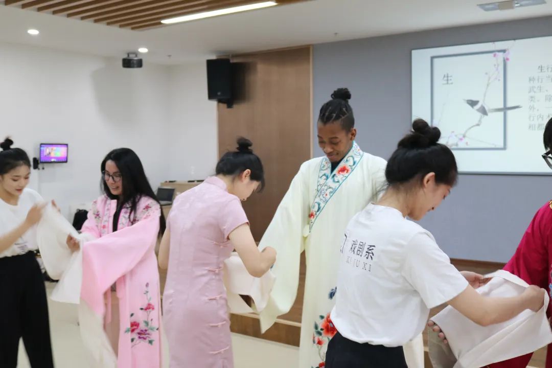 以戏为媒,讲好中国故事——戏曲艺术走近留学生为深入学习贯彻习近平新时代中国特色社会主义思想主题教育,扎实推进主题教育走深走实,使学生在专业学习中领悟核心素养,在社会实践中了解使命担当,戏剧系组织师生代表赴浙江农林大学国际交流学院交流,以“讲座+表演”的形式搭建传播平台,以戏曲为媒,讲好中国故事。    在本次交流学习过程中,徐耀芳老师与同学们向外国友人分享了中国戏曲的特点以及美学价值,用讲述,表演,教学示范等多种形式让外国友人切身感受了戏曲的唱念之韵,做打之美,让留学生们近距离地感受戏曲的独特韵味和中华传统文化的独特魅力。    未来我系将依托专业特色和人才力量,持续开展“走近留学生”活动,以提高戏曲国际传播能力,用戏曲讲好中国故事,实现“以文化人、以艺通心”。  本次与浙江农林大学国教学院共同举办的主题教育学习不仅为外国友人了解戏曲文化提供了渠道,更重要的是让戏剧学子明白了戏曲人的初心,要热爱戏曲事业,用戏曲作品去鼓舞人、温暖人,在专业学习中体会戏曲精神,在服务人民中感悟初心理想,以不变的初心适应巨变的时代。