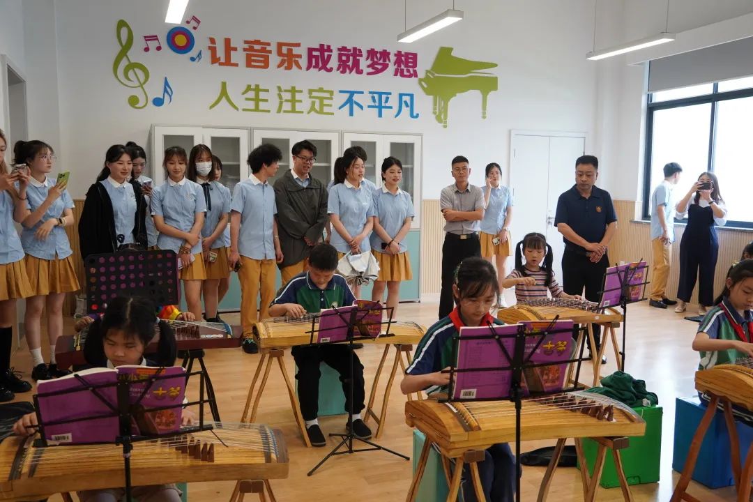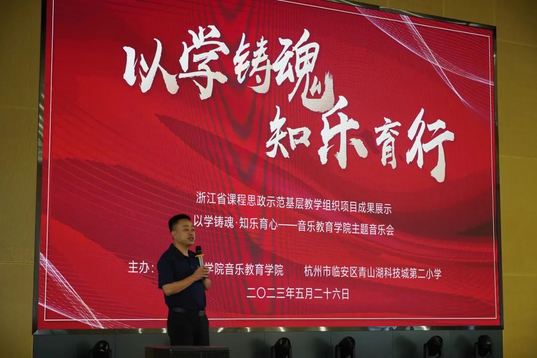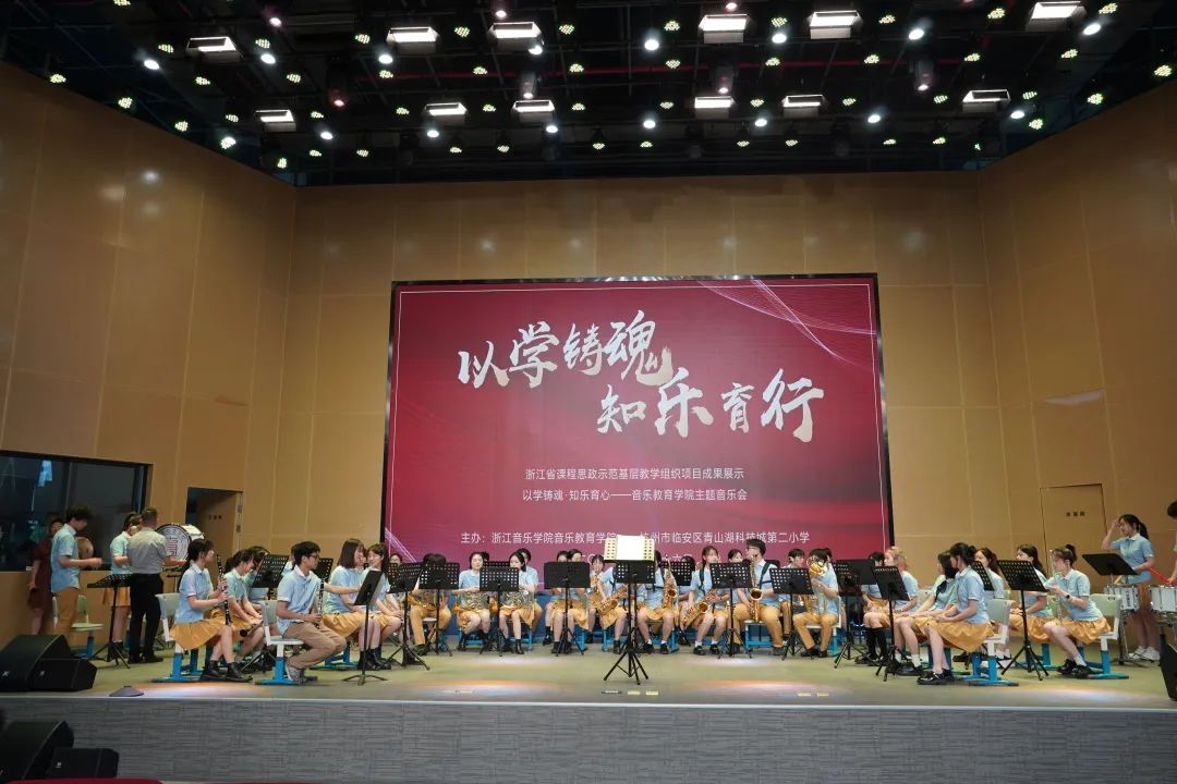 音乐教育学院赴青山湖科技城第二小学开展主题教育音乐会为高质量开展学习贯彻习近平新时代中国特色社会主义思想主题教育,提升音教学子教育教学能力,涵养高尚师德师风,5月26日,音教学院行进管乐团一行43人,由学院行进管乐教师何宁、辅导员王淑芳带队,走进了杭州市临安区青山湖科技城第二小学,开展行进管乐示范团队建设见习实践活动暨“以学铸魂·知乐育心”音教学院主题教育音乐会。  来到小学,浸润初心  青山湖科技城第二小学吕校长亲自迎接了见习团队,表达了对乐器的亲切感和对音乐的热爱情,随后详细介绍了青山湖科技城第二小学的基本状况,传递了浙音校友在小学内的任职情况,并激励见习生们未来成为优秀的音乐教师。接着,何宁老师发表见习动员讲话,希望同学们将教学学习从大学课本落实到中小学课堂,呼吁大家认真观摩并学习二小的系列课程和教育教学管理,找寻教育初心,理论付诸实践,积攒宝贵经验。  素质拓展,生动校园   下午,正值青山湖二小全校的“X拓展课程”进行时,吕校长带领音教见习生们依次观摩了全校60多个社团的教学活动。“X拓展课程”涵盖了武术、轮滑、篮球、书法、沙画、陶艺、排箫、舞蹈、计算机、机器人等项目教学,囊括科学、体育、艺术等多个领域,由外聘教师与本校教师共同教学,学生根据兴趣爱好自由选择喜爱的社团进行素质拓展。小学生们在自己的社团自由发挥、大显身手,为观摩的同学们带来了全新绝妙的见习体验,可谓是“大开眼界”。   班队示范,启迪心灵  观摩完素质拓展课程后,二(6)班的少先队员们为我们带来了主题为《勤俭节约树新风 艰苦奋斗继传统》的示范班队课。小学班队课是少先队员们政治信仰启蒙和思想道德修养的地方。本堂课由班级中队长和辅导员组织带领,主题鲜明、思路清晰、重点突出、创意新颖,展示了列队、出旗、唱队歌、主题讲话、呼号、敬礼等队会课的规定动作和流程,通过新闻实例、数据计算、故事讲解、环保创意等引导大家务必勤俭节约,启发着现场所有同学们坚定初心、坚守本真、坚毅奋斗,时刻准备着。    以学铸魂,知乐育行  队会课后,音教学院MTC行进管乐团的同学们进行了“以学铸魂·知乐育行”音乐会展演。《钢铁洪流进行曲》《祖国不会忘记》《在希望的田野上》《歌唱祖国》等一首首经典旋律和红色曲目,与班队课相辅相成、相互呼应,在每一位小朋友的心中播种了红色先锋的种子,根植红色基因,赓续红色血脉,让“红色”照亮学生的成长之路。  通过此次见习活动,音教学子们坚定了作为一名师范生的教育初心,明确了学习目标和职业理想,深化了课程思政基层教学实践,留下了让小朋友们备受鼓舞的音乐熏陶,带回了别样宝贵的见习实践经验,为未来的实习和教学工作奠定了良好的基础。相信在今后的学习和教育过程中,“小老师们”将在活动中的所学所思所得应用于育人实践,引导“祖国的花朵”更好地成长。
