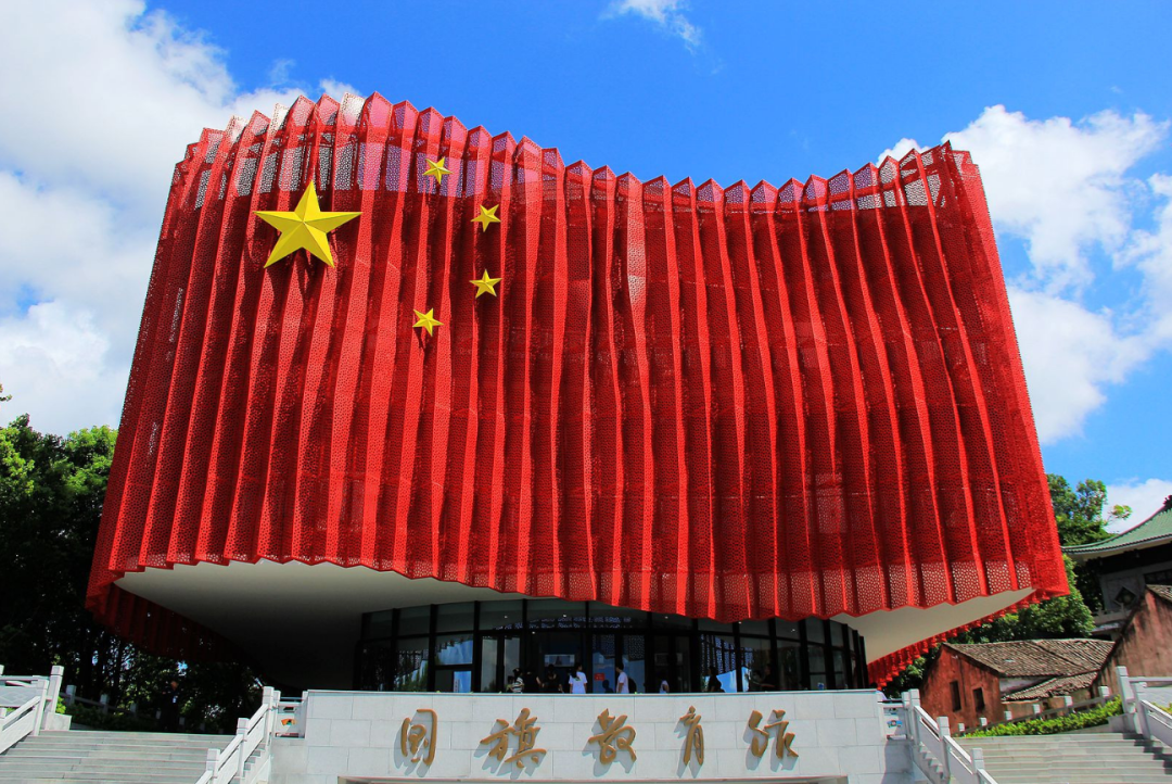 戏剧系教工党支部“红色支部行” 走进国旗教育馆为深入学习贯彻习近平新时代中国特色社会主义思想主题教育,丰富戏剧系主题教育学习形式,推动主题教育学习精细化、具体化,进一步加强教师党员的家国情怀,5月21日戏剧系教工党支部组织党员赴瑞安国旗教育馆开展红色主题教育活动。  “天圆地方,天瑞地安,鼎盛中华,红旗飘扬”。国旗教育馆位于瑞安市区西山,是全国首家以国旗为主题的爱国主义教育综合展示馆,包括序厅、尾厅、附属厅及国旗诞生厅、国旗知识厅、国旗荣耀厅、瑞安发展厅4个主题厅。   走进场馆序厅,一块高约19米的大屏幕上呈现着天安门广场升旗的动态画面,天安门城楼雄伟壮丽,旗杆上的国旗迎风飘扬,全体党员在国旗前庄严肃立,行注目礼。随后,党员们参观了国旗教育馆,了解了国旗的诞生历程、国旗知识和瑞安发展历程。   此次活动让教师党员们接受了一次集国旗科普、红色教育、特色文化于一体的爱国主义精神洗礼,增强了党员们尊重国旗、爱护国旗的责任感和民族自豪感,让主题教育活动更加走深走实。