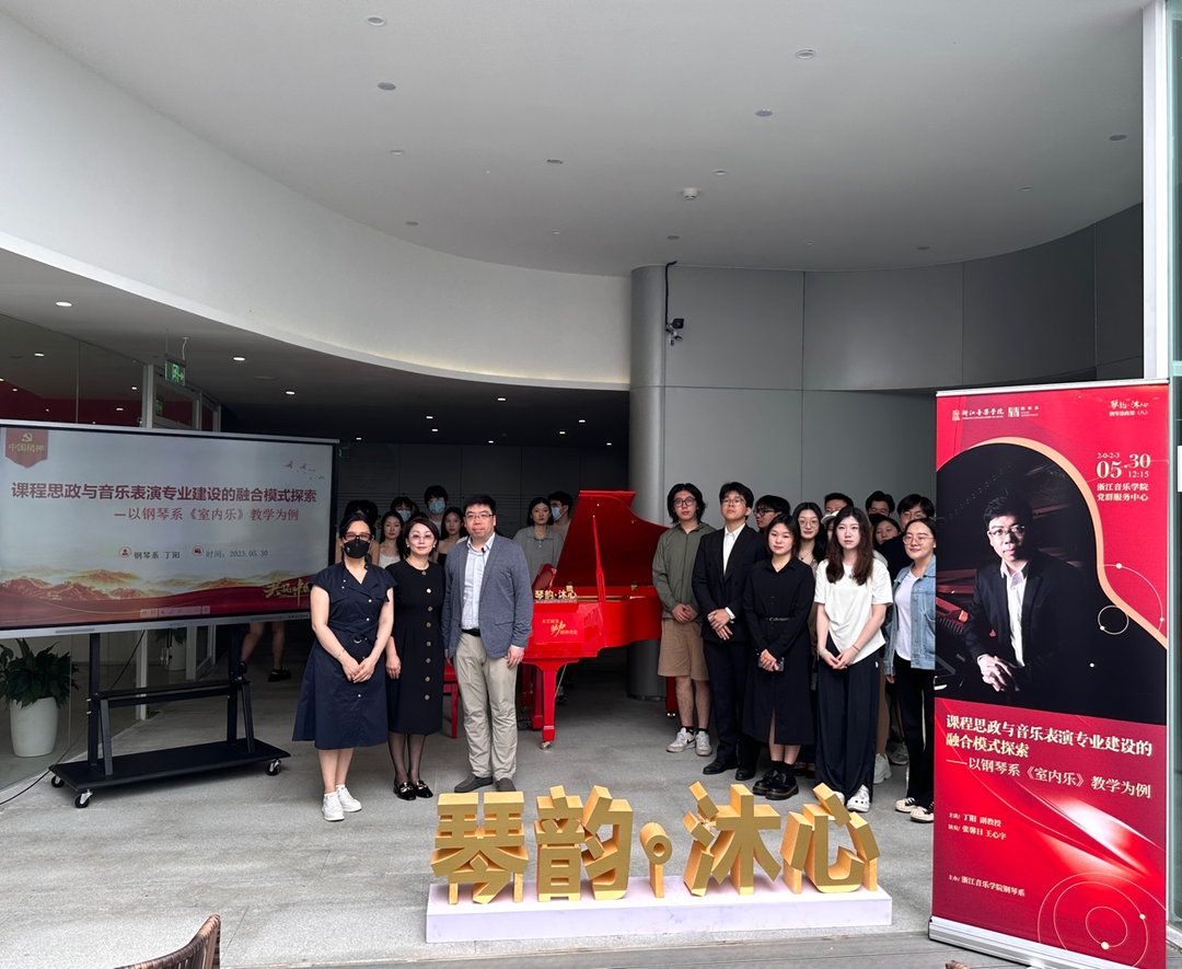 室内乐是浙江音乐学院钢琴系学生的必修课以及主干课。丁阳老师认为同学们在学习西方室内乐演奏的经验与方法的同时,要进一步更好的把课程思政融入到表演中。我们要弘扬具有中华民族特色及优秀传统文化的室内乐作品,重视中国经典室内乐作品的学习和研究。将我国的民族音乐融入室内乐教学是其发展的新方向。