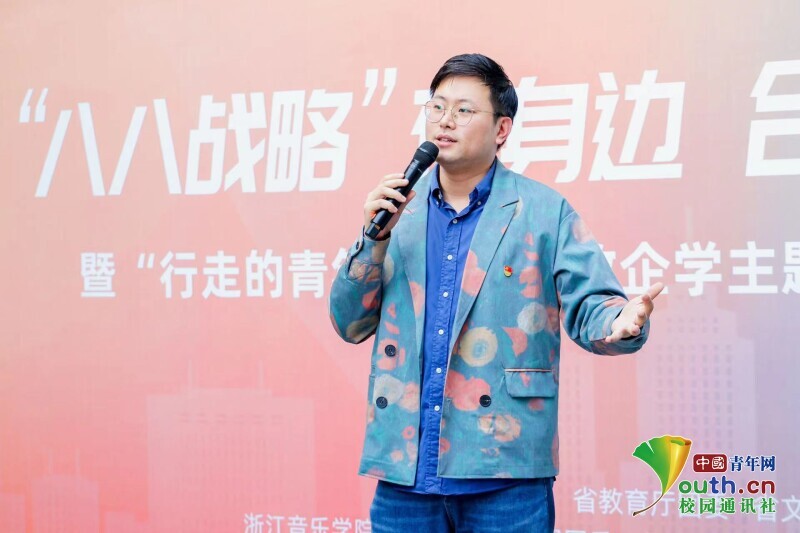 图为浙江音乐学院青年艺术家宣讲团成员、浙江省思政微课特等奖获得者王刘,为大家讲述“八八战略”下的文化浙江建设。 中国青年网通讯员 傅璇 供图