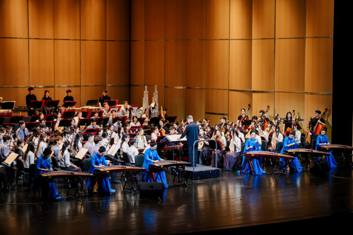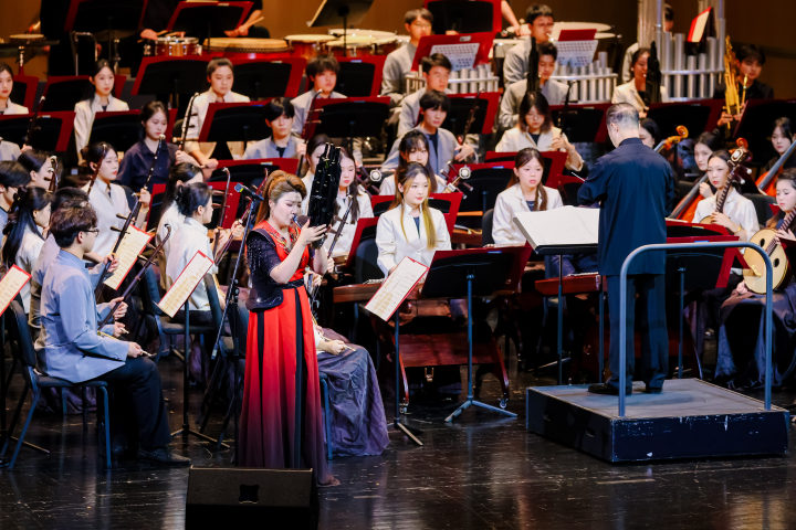9月27日晚,浙江音乐学院申报获批的国家艺术基金2025年度大型舞台剧和作品创作资助项目——民族管弦乐《颂·江南》在金沙湖大剧院成功上演,用音乐唤醒了人们心中对江南的记忆与想象,在将典雅细腻的江南文化传入剧院的同时,也向世界传递了美妙中国的时代乐音。
