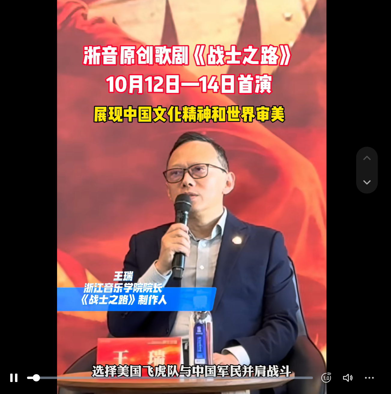 动听968:浙江音乐学院原创歌剧战士之路将于10月12日—14日在浙音大剧院首演,歌剧选择飞虎队与中国军民并肩作战的题材,展现中国的文化精神和世界的审美