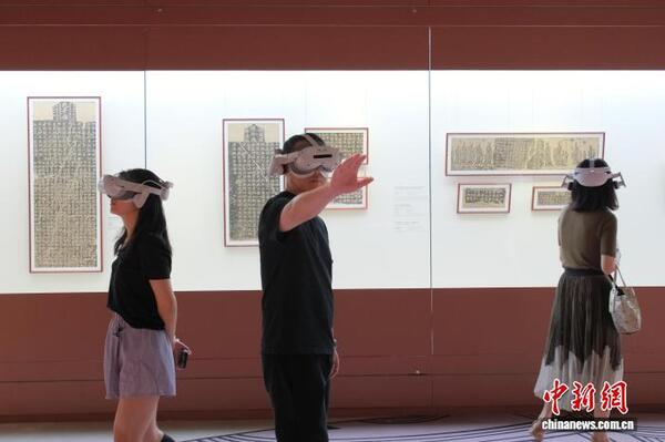 2025年7月8日,游客在杭州佩戴可穿戴式VR设备观展。 曹丹 摄