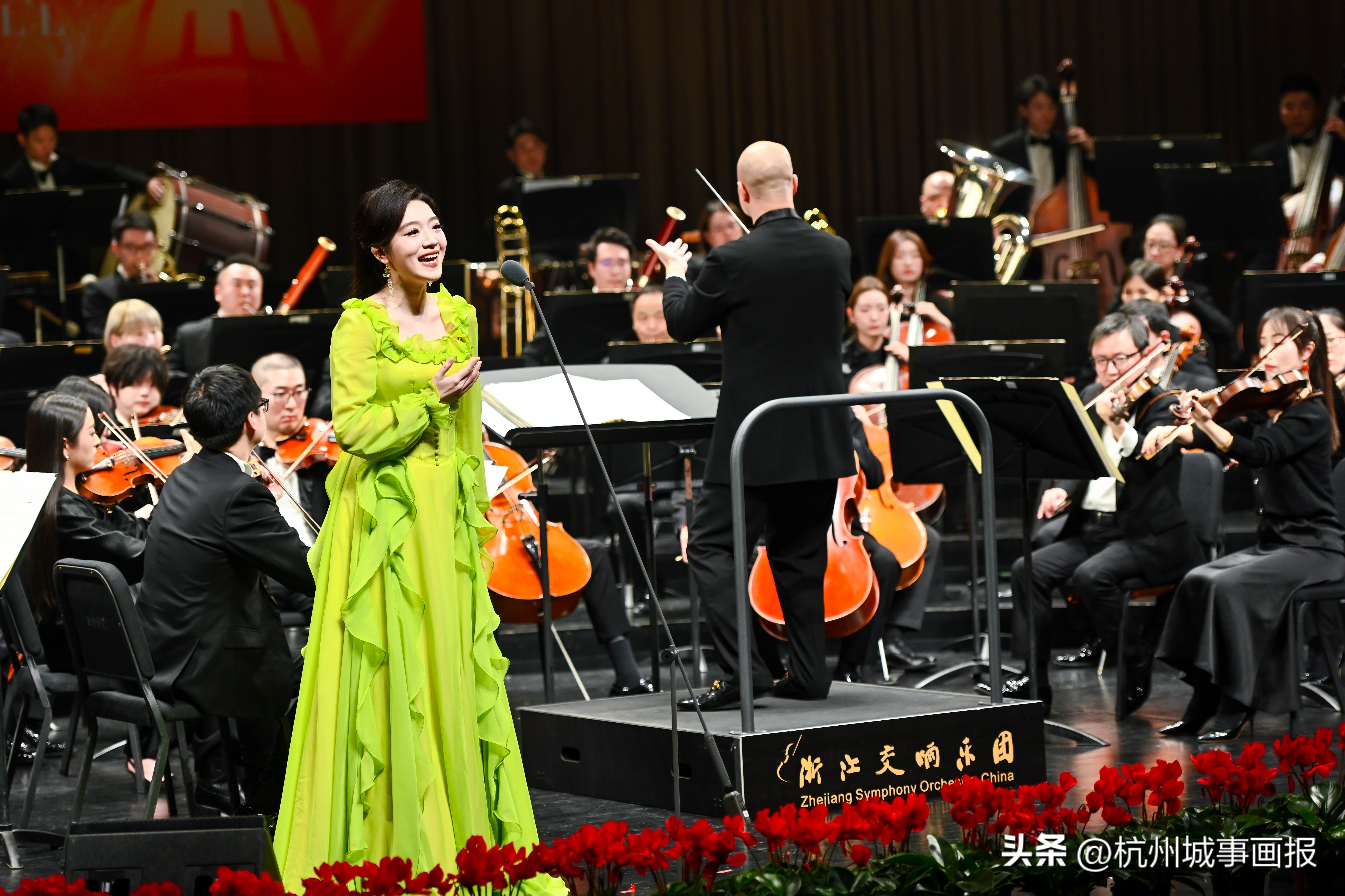 音乐会尾声,浙江交响乐团奏响《潮向未来》,以钱塘潮涌为意象,奏响了浙江勇立潮头、开拓创新的时代强音。最后,在全体艺术家与观众齐声高唱《我和我的祖国》的深情旋律中,音乐会圆满落下帷幕,余韵久久回荡。