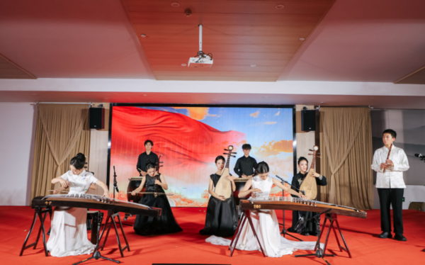 随后,民乐小合奏《长城谣》以古筝、二胡、琵琶、竹笛与大鼓的和谐共鸣,勾勒出悠远壮阔的家国情怀。