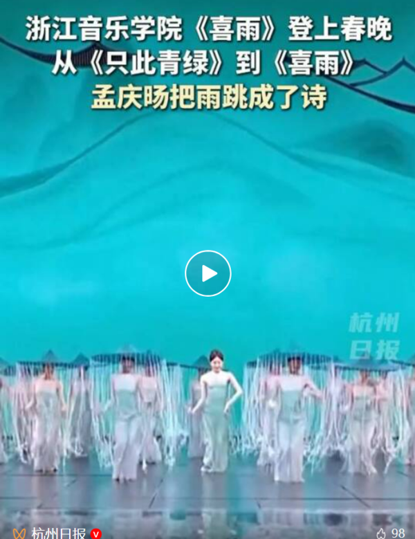 还有浙江音乐学院的舞蹈《喜雨》,展现独特的江南美学。