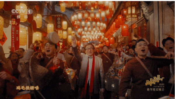 今晚的舞台之上,一个“国际范儿”的义乌呈现在大众眼前。72岁的春晚常客成龙,与77岁的美国知名歌手莱昂纳尔·里奇同台演唱,两大国际巨星跨越国界,共唱《we are the world》,隔空用中文和英文共同演绎这首歌曲。