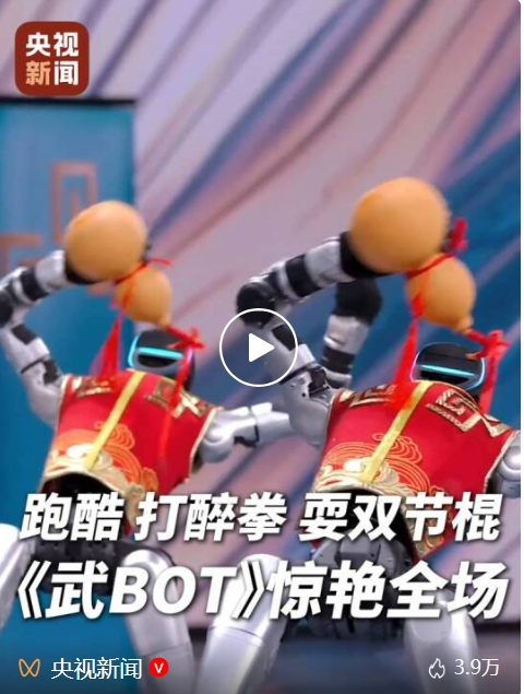 从去年的《秧BOT》到今年的《武BOT》,机器人在春晚 “舞”出新高度!有网友表示“这是中国科技与中国功夫的最强合体!”《武BOT》燃爆的不止是舞台,还有我们对未来的无限期待。