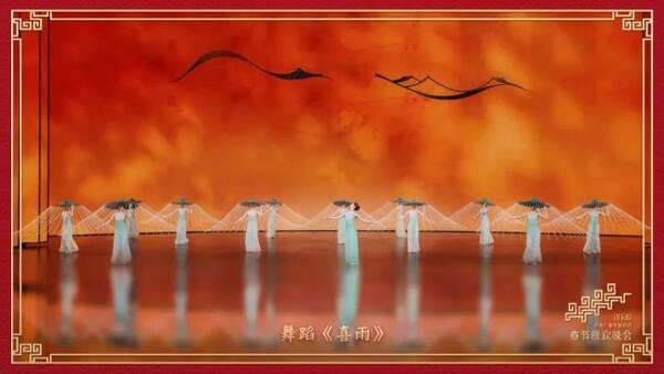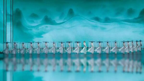 演出过程中不断变换队形,展现如“轻舟”“屋檐”“远山”等中国古典意蕴的诗意构图,让这场跨越千年的春雨在当代舞台上“润物无声”。