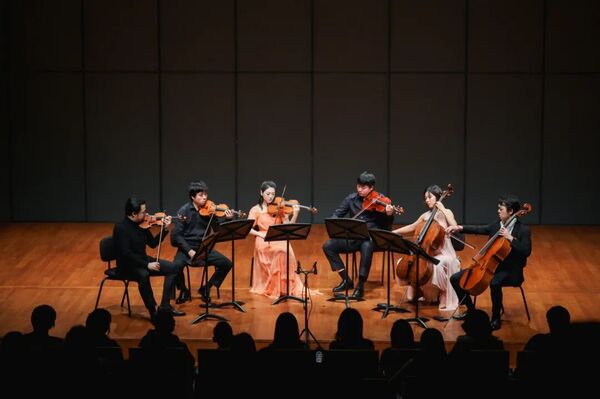 在《升华之夜》中,六位弦乐演奏家构建出一种高度流动的音响图景。小提琴声部在高音区的持续张力,与中提琴、大提琴的厚重织体形成对位关系,使作品中由压抑走向升华的心理轨迹得以清晰呈现。演奏并未停留在晚期浪漫派语汇的表层渲染,而是通过对声部层级的精细控制,凸显出勋伯格式“连续发展”的结构逻辑。