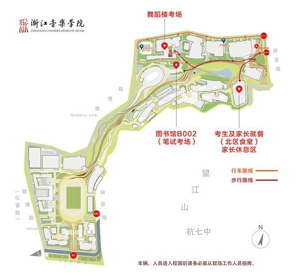 2.如需自驾车辆进入考点,请听从指挥,将车辆停放地下车库,临时接送车辆即停即走;学校周边交通路况复杂,请考生及时了解杭州市区车辆限行规定,选择合适的交通工具提前出行,以免误考。