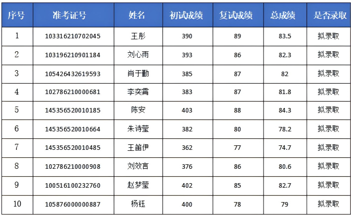 经学校研究生招生委员会审定,现对调剂复试考生拟录取名单予以公示,具体名单如下。