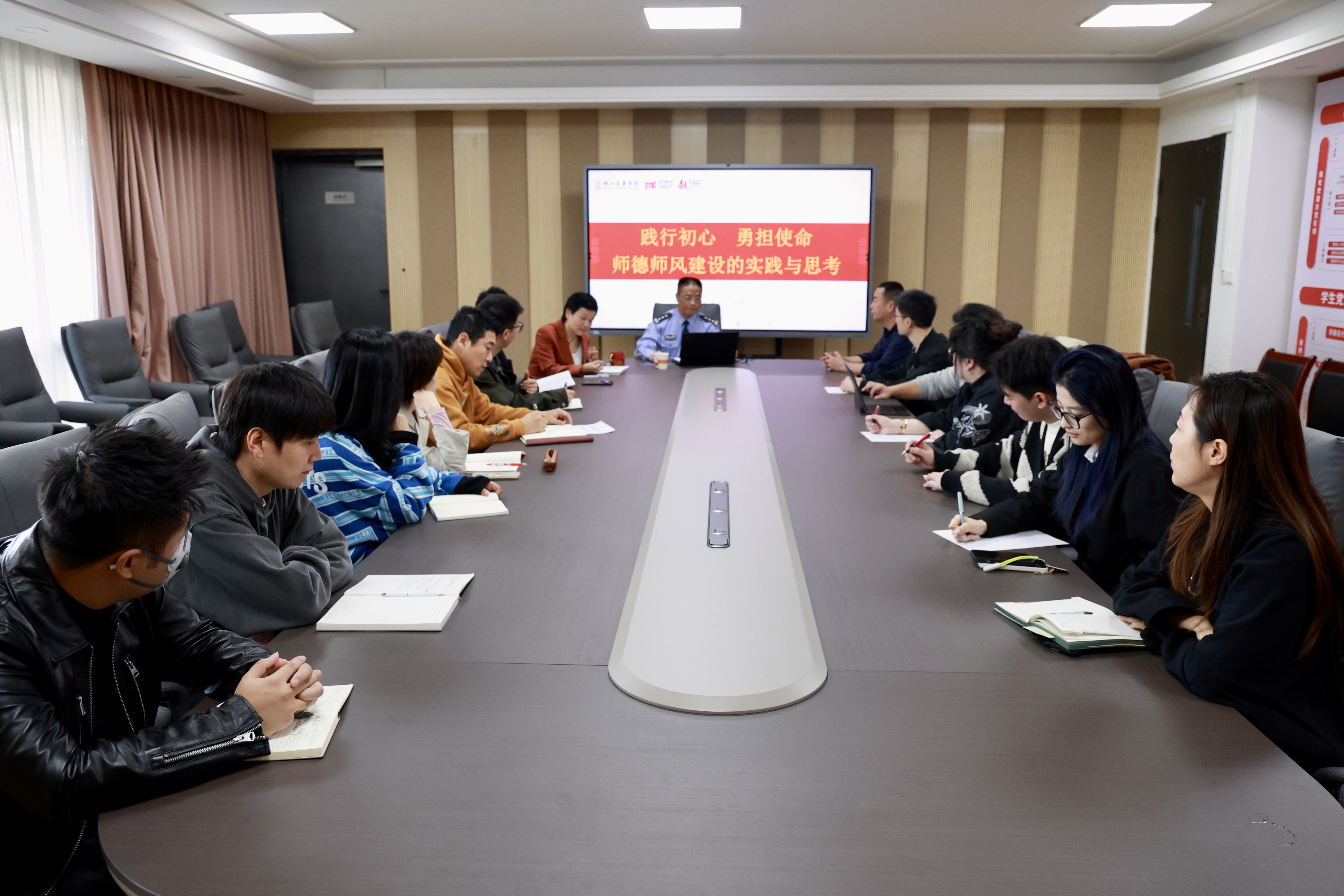 为进一步加强新时代教师队伍建设,弘扬高尚师德师风,10月24日下午,流行音乐系党总支与声乐歌剧系党总支共同举办了以“践行初心 勇担使命”为主题的师德师风建设专题学习会。学习会特邀浙江省司法行政系统三级高级警长张增富同志作专题报告,由流行音乐系党总支书记叶坚琳主持,两系教师党员齐聚一堂,共同聆听与思考。