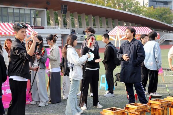 当天,田径场上举办的“趣味运动嘉年华”与颁奖仪式同步开启,舞蹈学院学子积极投身其中,纷纷秀出“隐藏技能”,在快乐运动中成为全场气氛担当,不仅享受着运动的乐趣,还在与各校青年的互动中结下了难忘的“运动友谊”。