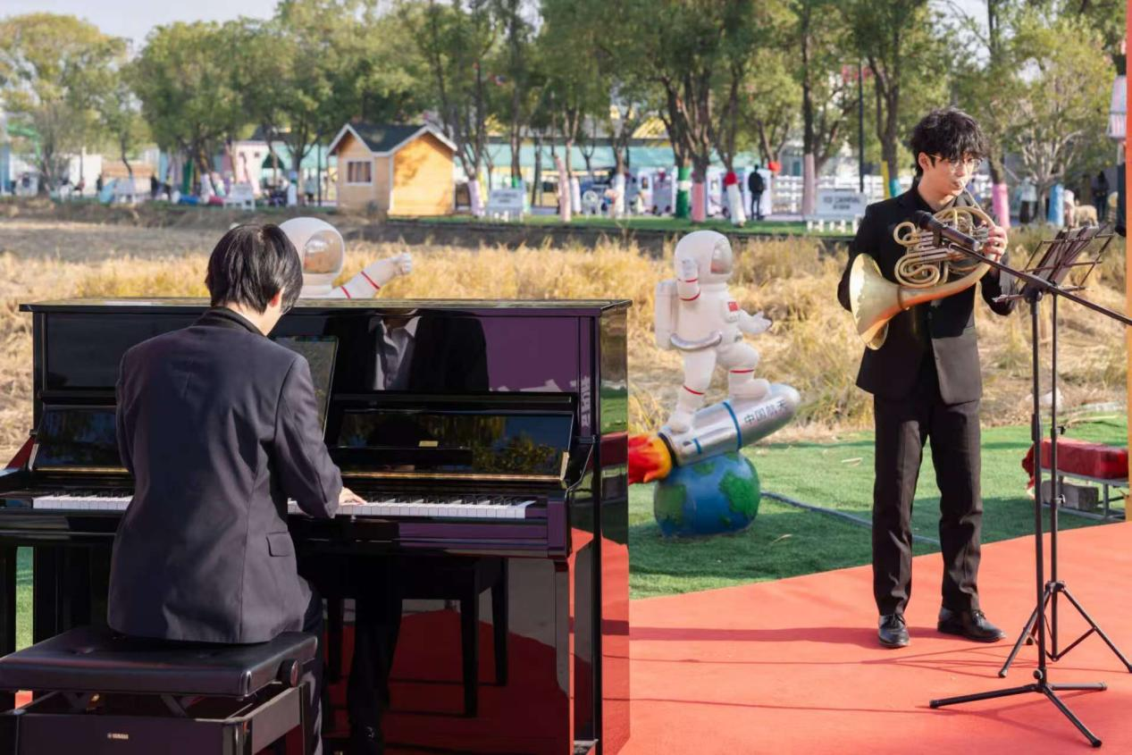 秋风拂过稻浪,田园风光与悠扬乐声交织,绘就了一幅别具一格的秋日图景。11月22日,由艺术指导教学部直属党支部、钢琴系党总支与转塘街道综合文化站、中共杭州市西湖区转塘街道何家埠社区总支部委员会共同承办“阅西湖·悦转塘·越未来——稻浪书韵·音为有你”主题活动在西子嘉年华精彩上演,活动得到了声歌系党总支、管弦系党总支、国乐系党总支、何家埠社区·西子嘉年华协办支持。活动现场,学生演员们凭借精湛的技艺,为观众呈现了一场视听盛宴,既展现了西洋音乐的优雅风韵,又传递了传统音乐的深沉内涵,令每一位在场观众都沉醉于艺术的瀚海之中。