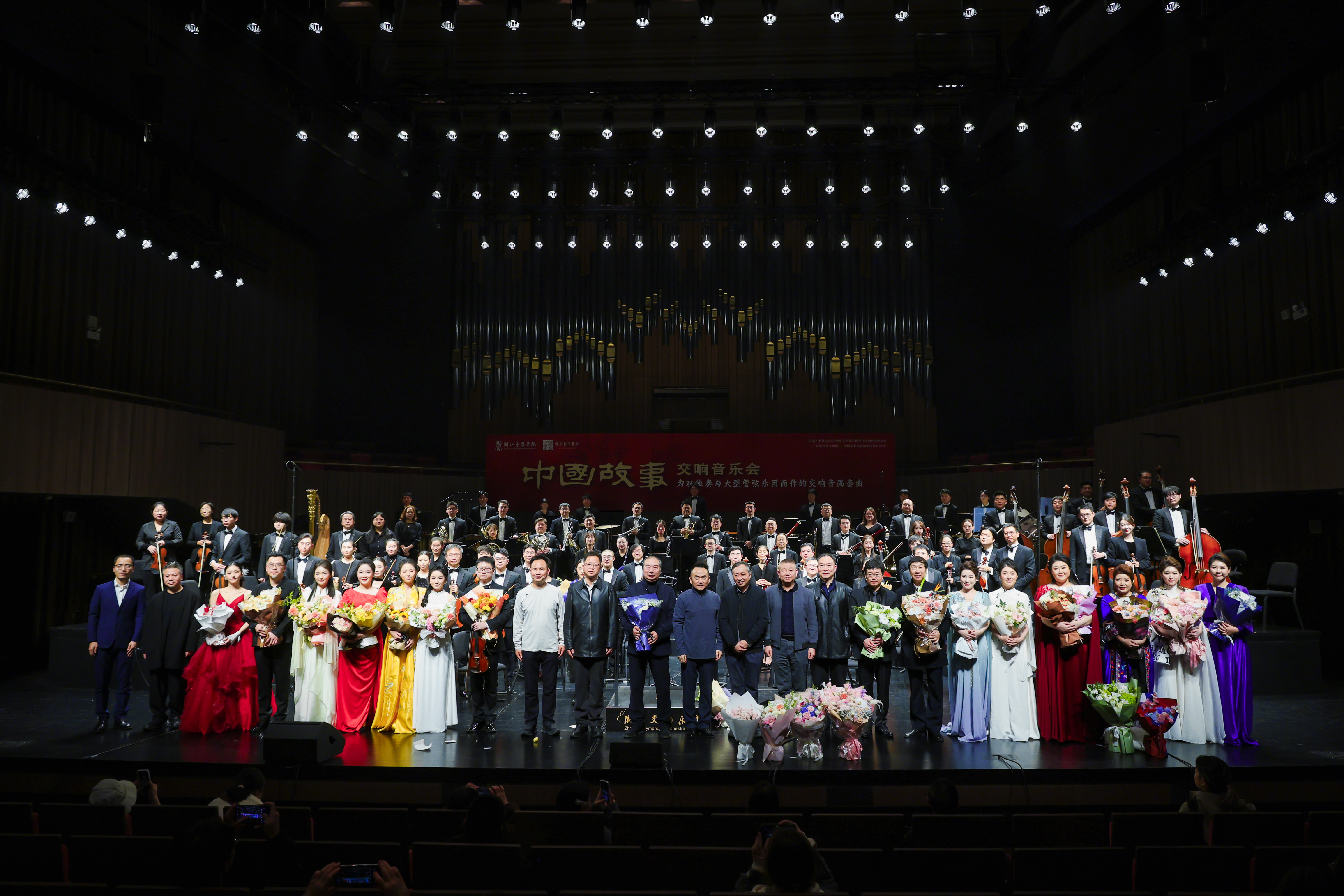11月22日,由国家艺术基金2025年度大型舞台剧和作品创作资助项目支持的大型交响音画套曲《中国故事》,在学院音乐厅首演。本场音乐会由学院特聘教授、作曲家张小夫创作,指挥家金野执棒,浙江交响乐团与浙江音乐学院共同演出,呈现了由12部独立乐章构成的交响音画系列作品。全场座无虚席,反响热烈。