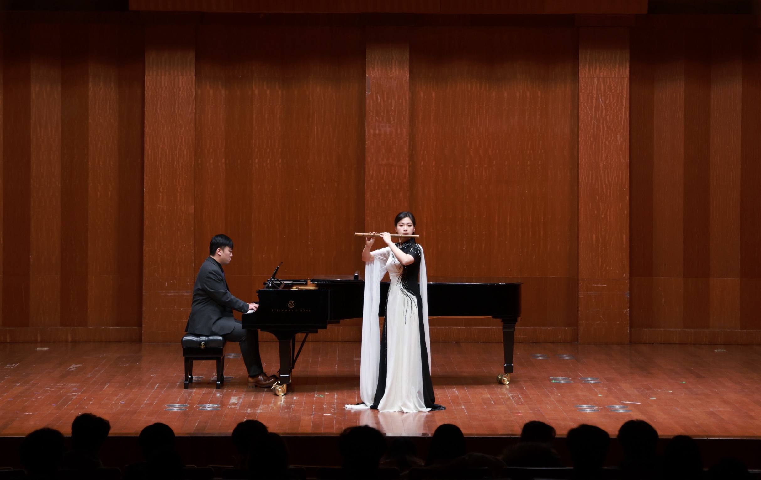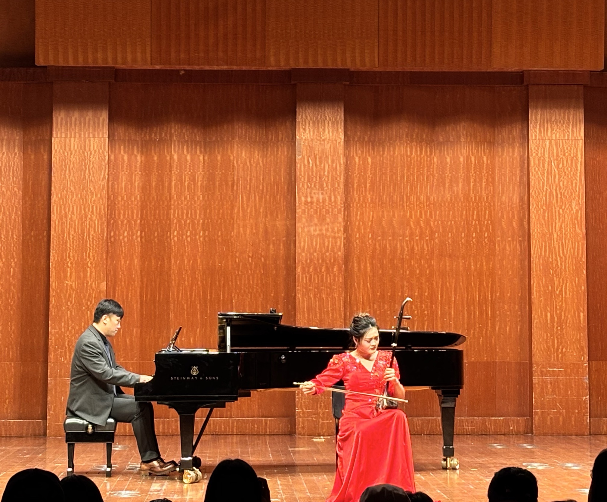 此外,国乐系研究生彭旎(指导教师:杜如松)与何欢(指导教师:何娜),荣获“卓越展演奖 ”和“卓越展演奖指导教师 ”,并在上海音乐学院贺绿汀音乐厅进行表演交流。