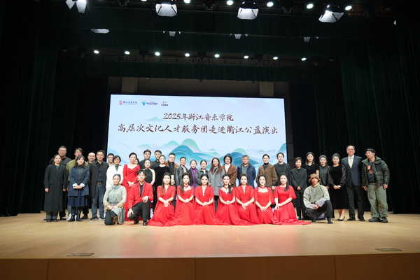 12月4日晚,由浙江音乐学院与中共衢州市衢江区委宣传部共同主办的专场公益音乐会在衢江区文化艺术中心聚橙剧院精彩上演。在音乐会现场,学院高层次文化人才服务团携作曲与指挥系、国乐系、管弦系、舞蹈学院、艺术指导教学部、附中师生团队为衢江百姓倾情献演古筝重奏《千秋》、四重奏《四季之秋舞》、五重奏《意象瓯绣》、竹笛独奏《锦绣》、二胡独奏《铭》以及群舞《故事新篇》等文艺节目。值得一提的是,本场音乐会上演的作品均为国家艺术基金2025年度小型剧(节)目和作品资助项目,为钱塘江南源的衢江两岸留下了动人的旋律。