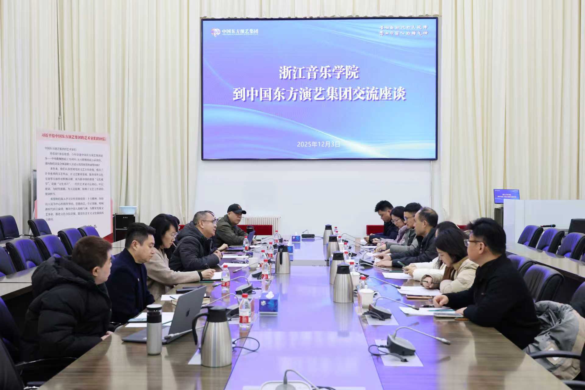 12月3日上午,调研团队前往中国东方演艺集团开展“访企拓岗”专项交流。集团党委书记、董事长景小勇热情接待了调研团队并主持座谈交流。在座谈会上,双方围绕艺术人才培养模式创新、毕业生就业供需对接、艺术创作实践合作等议题展开了富有建设性的讨论,并就进一步加强校企联动、拓展实习实践平台达成了初步共识。