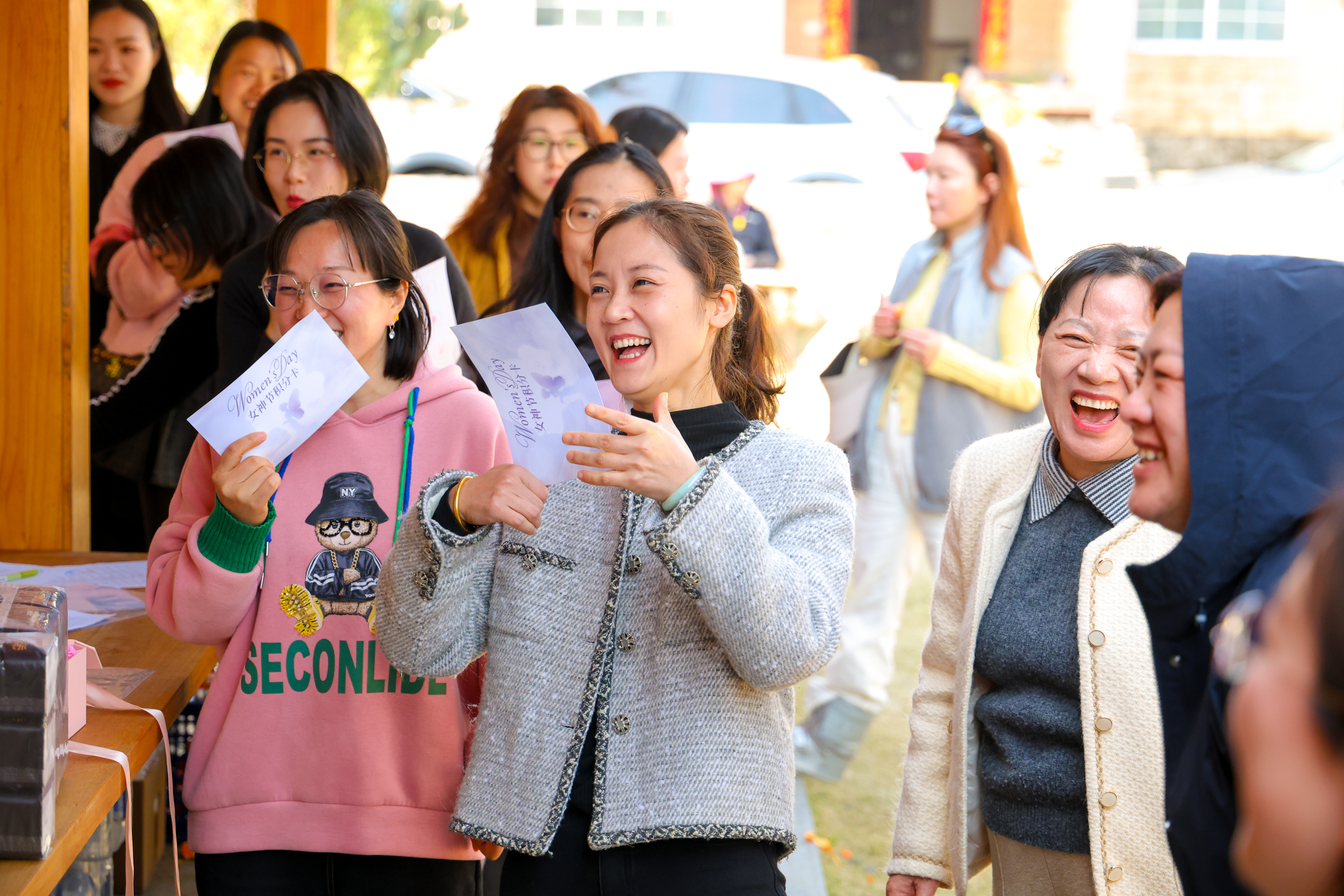 本次活动以春日茶山为依托,打造沉浸式趣味体验,让女员工们在互动中拉近距离,在陪伴中增进情谊。清幽茶山间,5个特色盖章打卡点错落分布,大家结伴漫步、循香集章,满目青翠相伴,欢声笑语随行,在轻松的步调里卸下工作疲惫,感受春日生机与团队同行的温暖;活动终点的石头剪刀布挑战赛,更让现场氛围热烈升温,女员工们踊跃参与、趣味比拼,凭实力赢取精美奖品,在欢声笑语中加深彼此联结,尽显乐典团队和谐友爱的相处氛围。