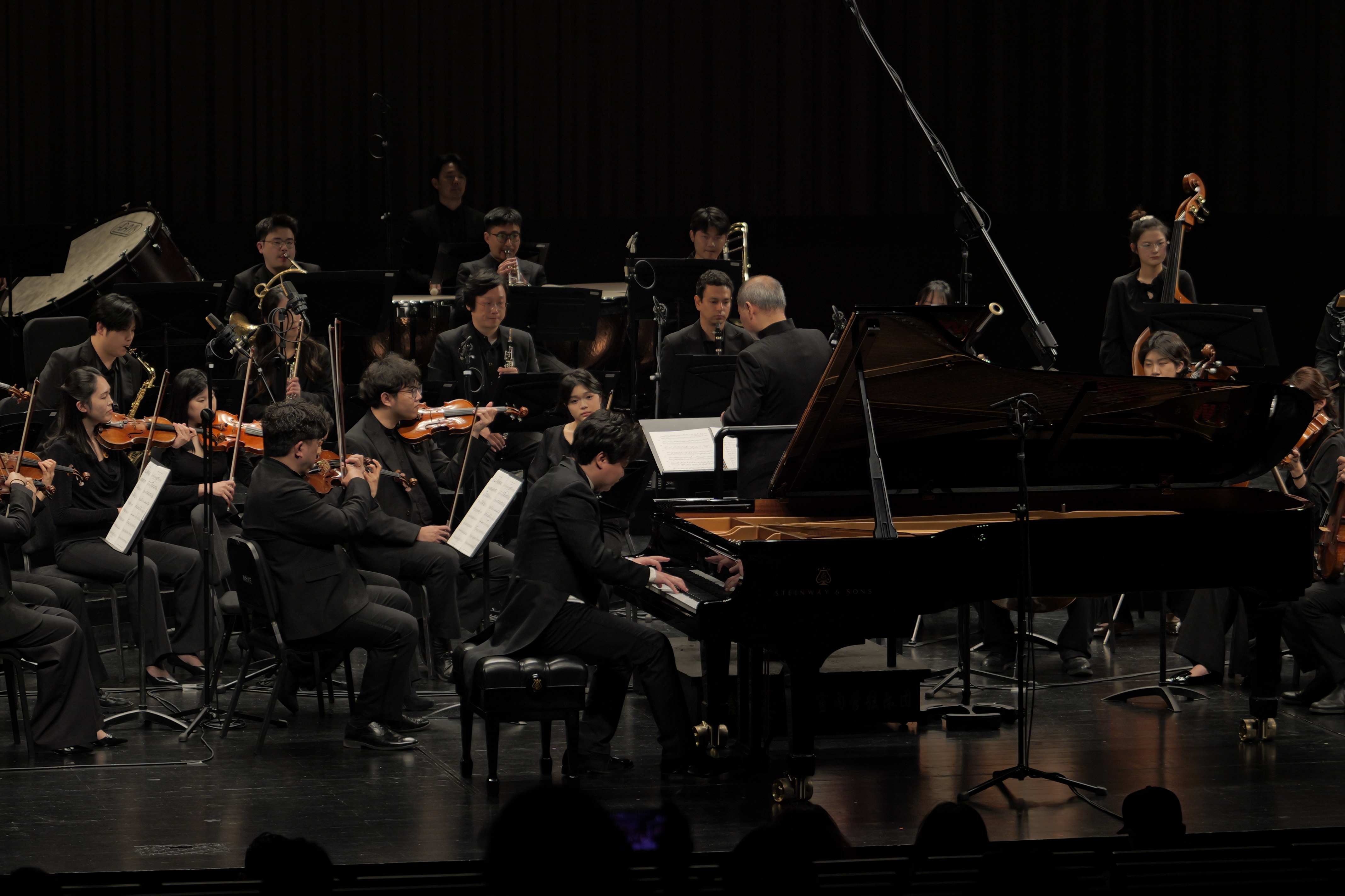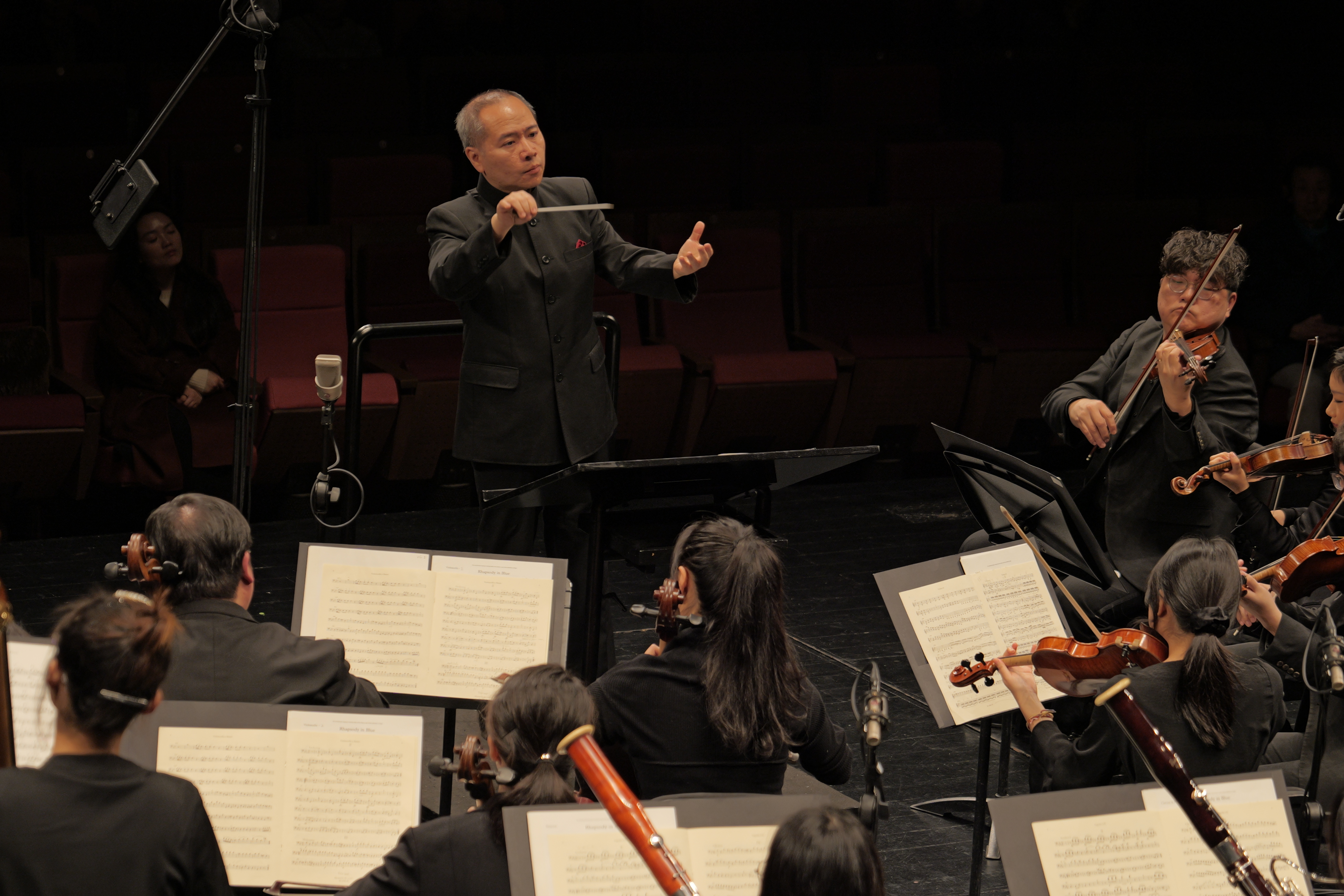 本场音乐会中,周杰指挥沉稳大气的指挥风格、精准细腻的节奏把控和对作品内涵的深刻解读,成为融合乐团与钢琴演奏的关键纽带。从莫扎特古典作品的严谨韵律,到格什温爵士作品的自由律动,他都能引导乐团调整最佳演奏状态,让管弦的旋律与钢琴的琴键完美相融,为整场演出的流畅呈现筑牢了坚实基础,也让现场观众感受到顶尖指挥家的艺术魅力。