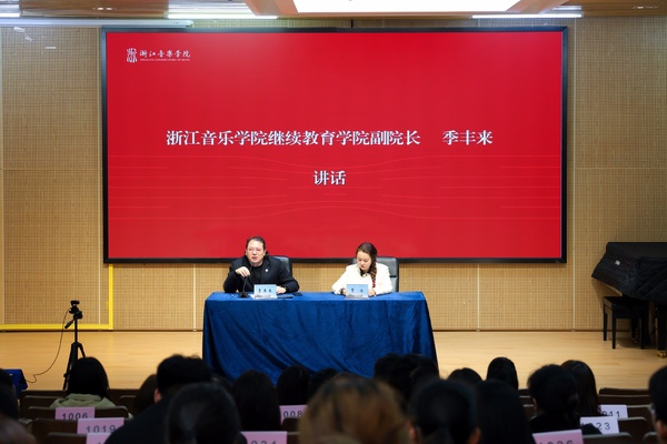 季丰来对新生表示祝贺。他简要介绍了浙音建校10年来在人才培养、科学研究、艺术创演等领域成果丰硕,同时表示,继续教育学院作为学校重要二级学院,肩负着成人高等学历教育、非学历教育等重要使命,是多个国家级、省级培训基地依托单位。他还结合时代需求向新生提出三点希望,希望同学们以赤子之心锚定求学航向,牢记学习初心,不被浮躁风气和工学矛盾困扰,将对音乐的热爱转化为学习创作的热情;以奋进之心勇破成长之困,勇敢迎接科技融入音乐教育的时代挑战,秉持拼搏精神砥砺前行,成长为有担当的音乐人才;以笃行之心夯实成才之基,求学无捷径、成才贵在坚持,要充分利用好学校优质资源拓宽视野,勇于创新突破传统,坚持终身学习。最后,他寄语新生,继续教育学习是逐梦路上的珍贵续航,希望大家兼顾工学、深耕专业,将所学融入日常实践,坚守艺术初心、传承音乐文脉,实现艺术追求与人生价值的双重提升,在浙音圆梦,为学校增光添彩。