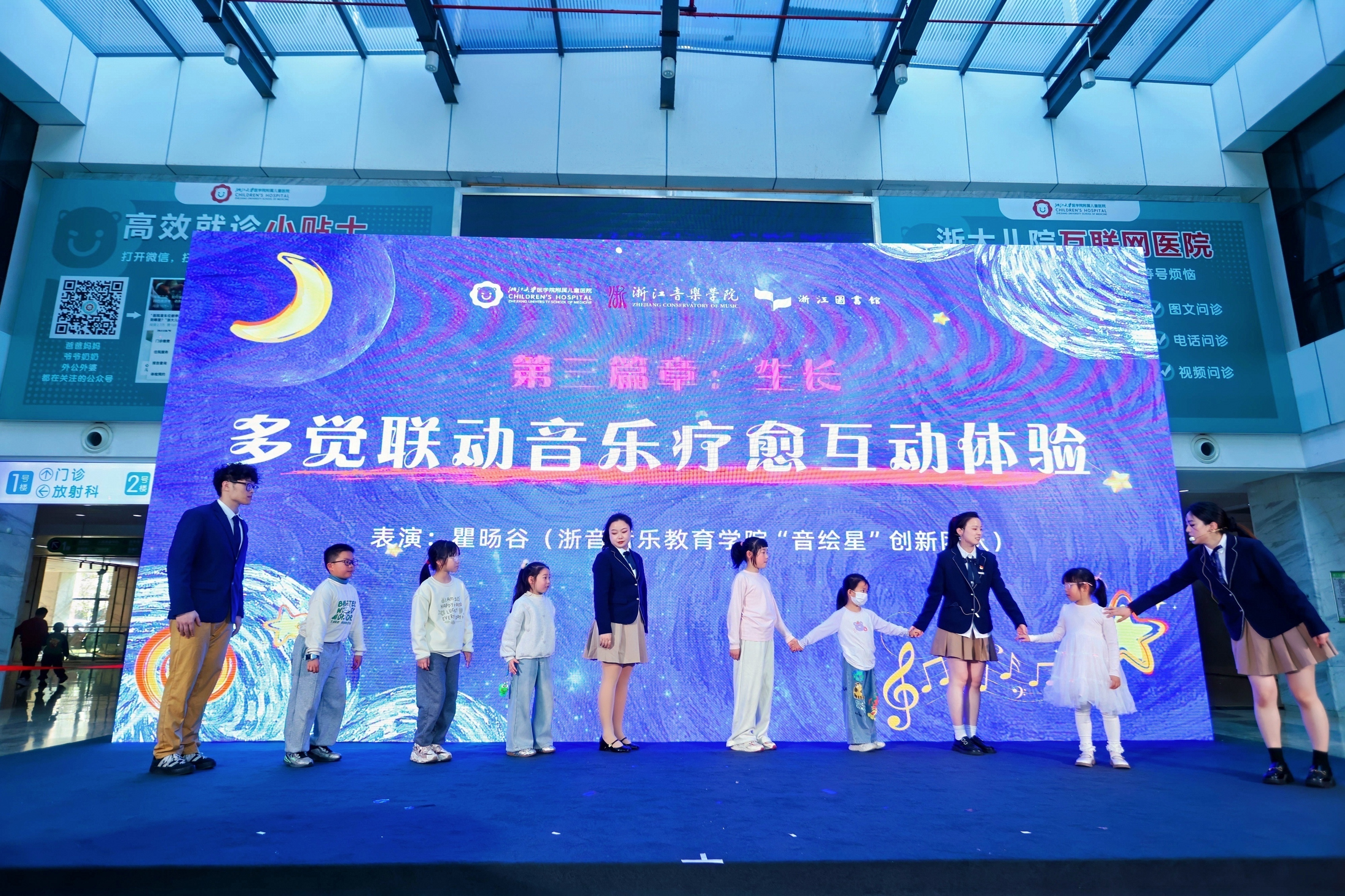 音乐疗愈产学研合作既是医校合作的里程碑,也是浙音办学成果向社会服务领域延伸的有益探索。自2023年6月浙音与浙大儿院启动音乐疗愈合作项目以来,双方已在志愿服务、跨学科研究、临床应用及产品转化等领域取得丰硕成果,医校联合课题组已获批国家自然科学基金青年科学基金等项目3项,发表核心期刊论文3篇;孵化出“艺颗星”“智音眠界”“绘声星语”等大学生创新项目,并在“挑战杯”“国际大学生创新创业大赛”等省级和国赛中斩获5项金银殊荣;成功打造“音画西湖”疗愈艺术周品牌,推出“音画疗愈(每日10分钟家庭疗愈指南)”“音绘星—孤独症儿童AI智能体”等多个创新场景应用产品。