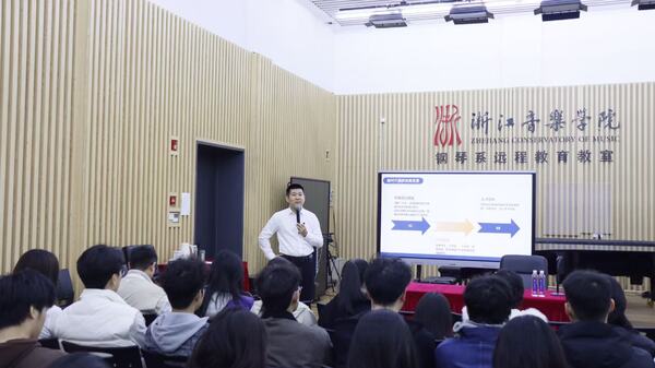 围绕升学、留学、考编、创业、就业五大群体需求,钢琴系还精心策划六大特色活动,实现分类指导、精准发力。例如,针对跨界就业,举办“破界・重塑”专题讲座,打破传统就业壁垒,梳理艺术教育、自媒体创作等新兴方向,引导学生树立复合型就业观念;面向留学深造,开展“艺路远航・逐梦全球”留学规划指导,围绕申请流程、作品集打磨、奖学金申请等内容提供全流程支持;聚焦升学提升,开设“砺能笃行・精进致远”专业发展辅导,助力学子科学规划、提升竞争力;中国国际大学生创新大赛备赛指南讲座立足艺术赛道特色,拆解规则、分享经验,激发学生创新创业热情;音乐专业考编通关指南专题讲座直击备考痛点,围绕政策解读、应试技巧、面试要点深度辅导,有效提升学子考编成功率。