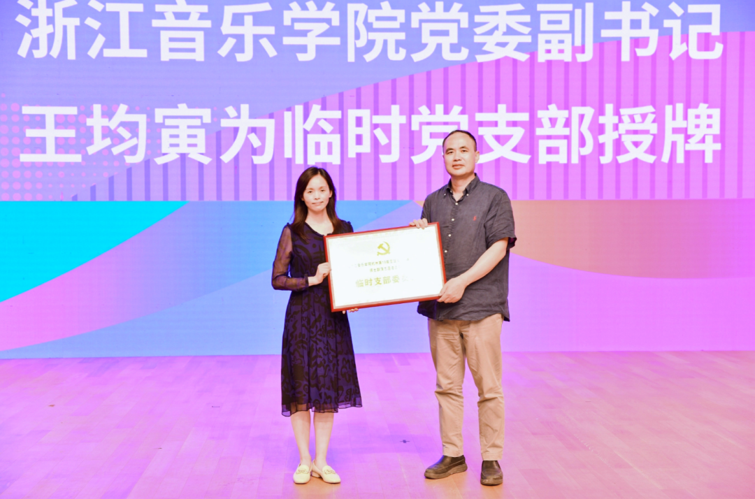学院党委副书记王均寅为临时党支部授牌。团委负责人为临时团支部授牌。