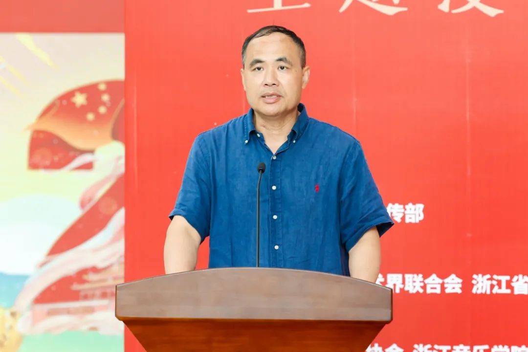 王均寅在开幕式上致辞。他指出,用漫画艺术宣传党的二十大精神,在浙江历史上乃至全国都是首创。此次主题漫画艺术展所展出的21个省(市、区)知名漫画家创建的80余幅作品,将党的二十大精神所蕴含的深刻意义表达的更富意境,为广大师生学习宣传贯彻习近平新时代中国特色社会主义思想和党的二十大精神提供了鲜活素材,也为我们开展“大思政课”实践教学创新了的教育载体。他表示,音乐与绘画是艺术的两大支柱,彼此之间有着诸多的内在联系。希望广大师生能从主题漫画艺术展中汲取养分,把点点滴滴的收获转化成为提升自己专业素养的动力,始终牢记以人民为中心的艺术导向,充分发挥学科专业优势,将党的二十大精神融入作品创作和文艺表演中,创作出无愧于这个伟大民族、伟大时代的优秀作品,为铸就社会主义文化新辉煌作出新贡献。