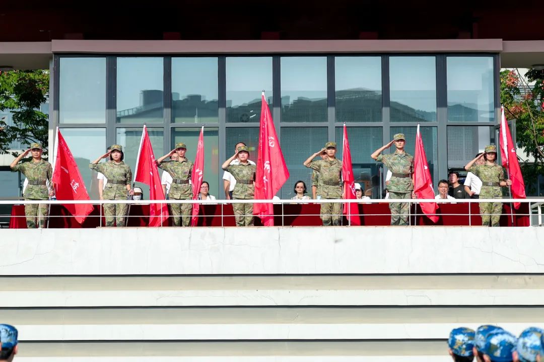 刘敏代表承训部队教官作表态发言。她表示,军训不仅是一场磨砺意志、淬炼体魄的修炼之行,也是一场相互认识、融入集体的破冰之旅。军训中不乏苦累,但穿上军装,大家就是钢铁战士。她希望同学们训练场比比看,场下互帮互助,全面激发集体最大凝聚力,完美打赢军训攻坚战。全体教官将以身作则,以过硬的军事本领教授同学们军事知识和技能。