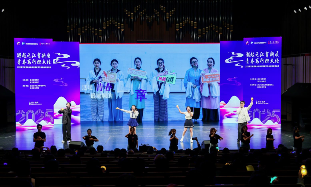 活动现场,由流行音乐系学生韩甜甜、唐澜、汪竑宇和张翼鏖演唱的浙江省国家奖学金特别评选活动主题曲《青春在场证明》正式发布,旋律激昂、词句铿锵,共同见证青春不悔、奋斗有声。这首歌的诞生本身正是一场“共同成长”的实践,歌曲词作者,来自浙音音乐教育学院学子符桢桢说,《青春在场证明》想要表达的是,所有磨砺都在酝酿破晓的光,青春的航线永远指向远方,通过选树榜样典型,激励更多大学生勇攀高峰、矢志报国。