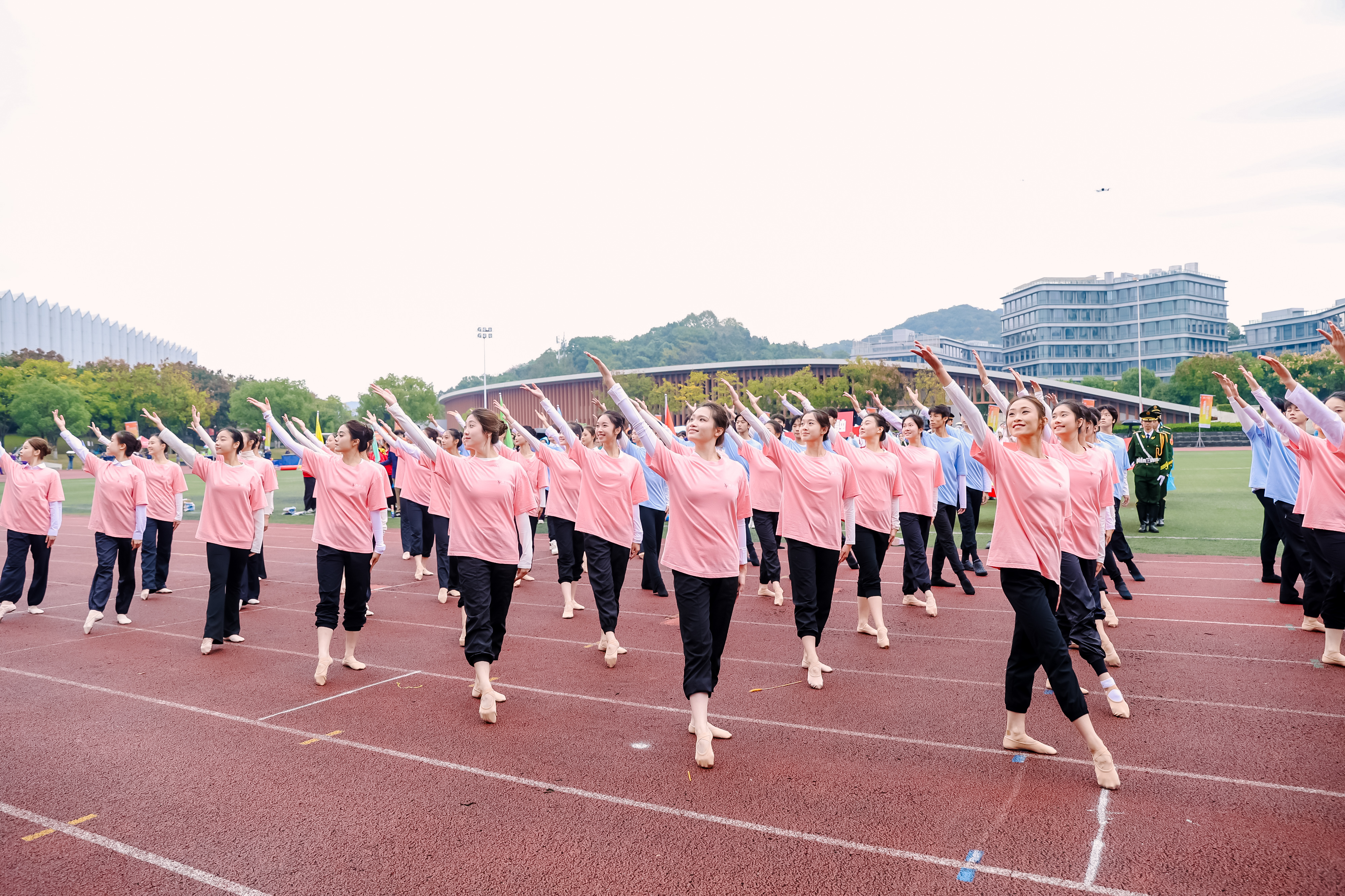国旗队、校旗队步伐坚定,各院系代表队精神抖擞、依次入场,充分展现了浙音师生团结进取、奋发向上的精神风貌。啦啦操暖场表演活力四射,为全场注入了青春与激情。