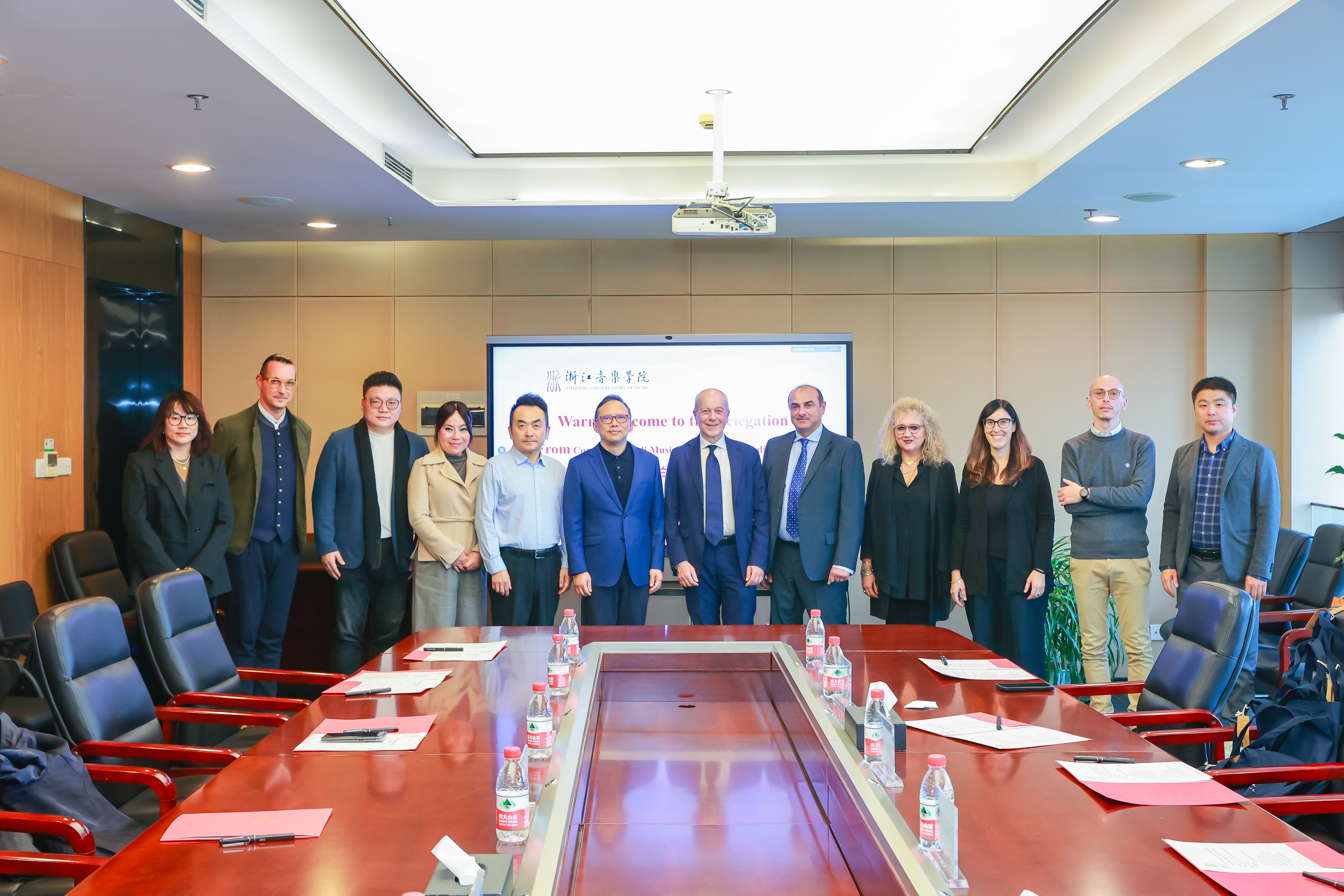 11月14日,意大利米兰威尔第音乐学院院长马西米利亚诺·巴乔一行到访浙音,院长王瑞会见并与之座谈,副院长董德君参加,国际交流合作处、艺术处、声乐歌剧系相关负责人陪同。